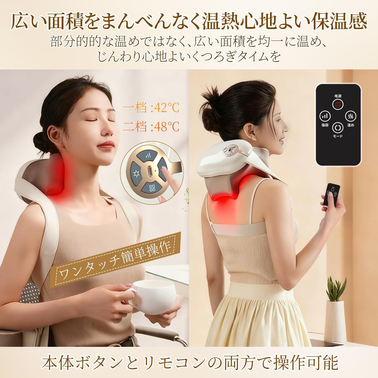 【新着商品】ネックケア 首 リラクゼーション器 【温熱&もみほぐし】新登場 軽量 静音 首元リフレッシュ リモコン&本体操作 ネックリラックス 温感リラックス 4種類のモード 3段階の強度調整 10分間タイマー機能 コードレス 首肩リフレッシュグッズ 男女兼用 操作簡単 お祝い 誕生日プレゼント 父の日 母の日 敬老の日 記念日