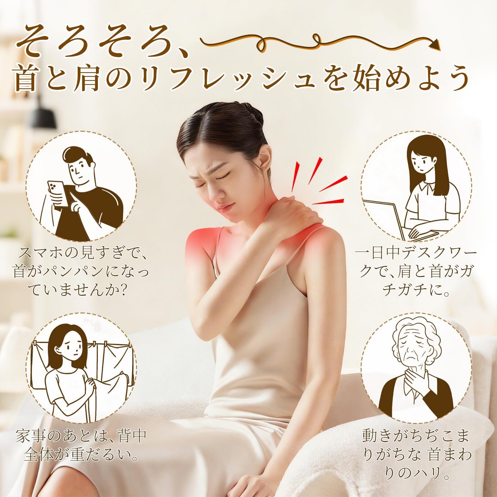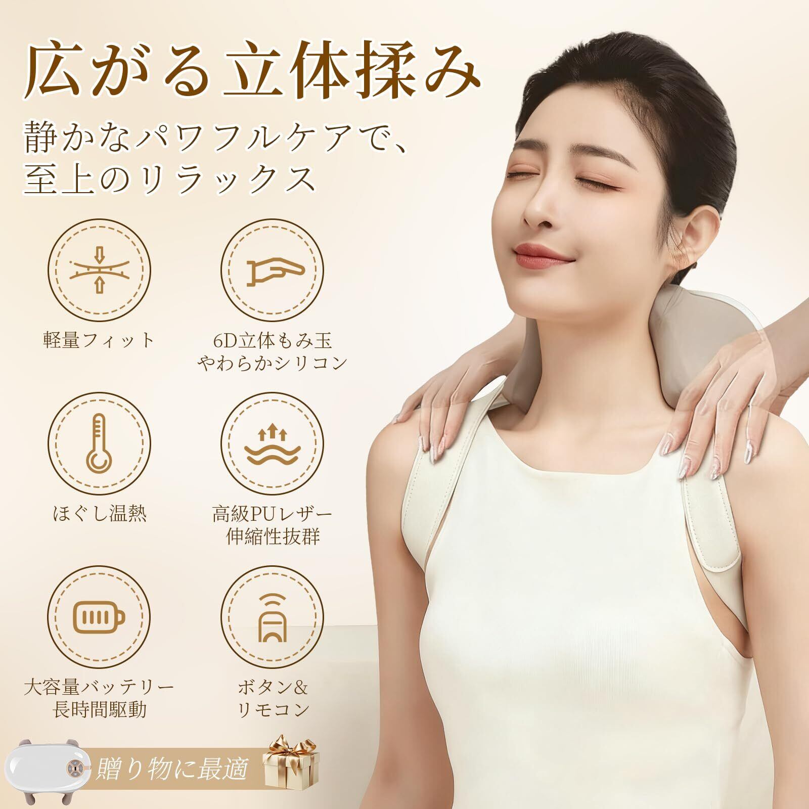 【贈り物に最適&安心の】 ご自宅やオフィスでのネックケアに、また心のこもった贈り物としても最適です。家族への感謝、友人への思いやり、日頃お世話になっている方へ。日々のリラックスに役立つ、実用的な贈り物として喜ばれます。高品質で洗練されたデザインは、どの年代の方にも好印象。製品には1年間のをお付けしていますので、万が一の際もご安心ください。専門のカスタマーサポートが迅速・丁寧に対応いたします。