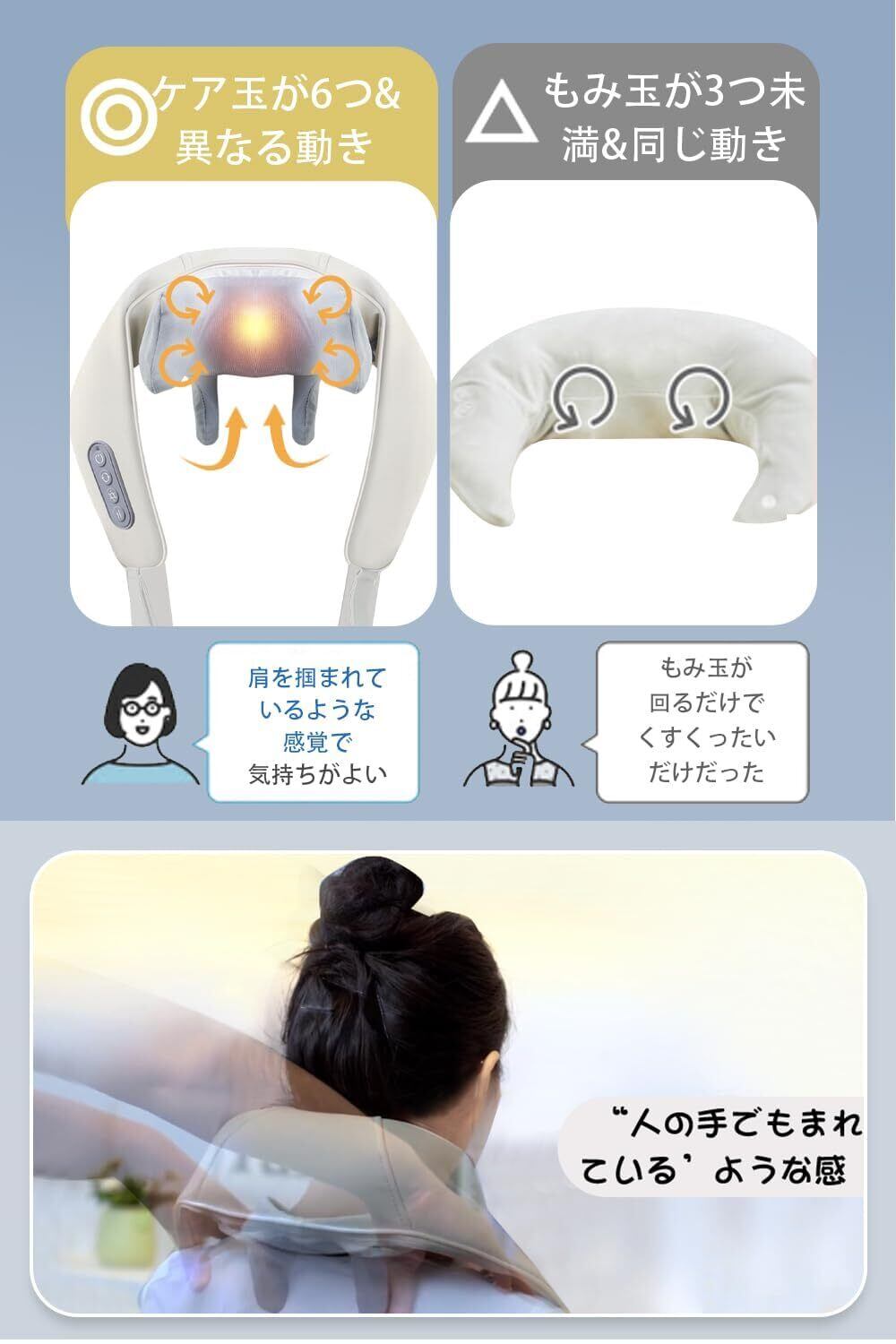 ネックケア 首・肩・腰・お尻・背中・太もも パワフル手揉み感覚 温熱ヒーター機能 大容量バッテリー コードレス USB充電式 強度調節 静音 軽量 洗える布カバー プレゼント ギフト