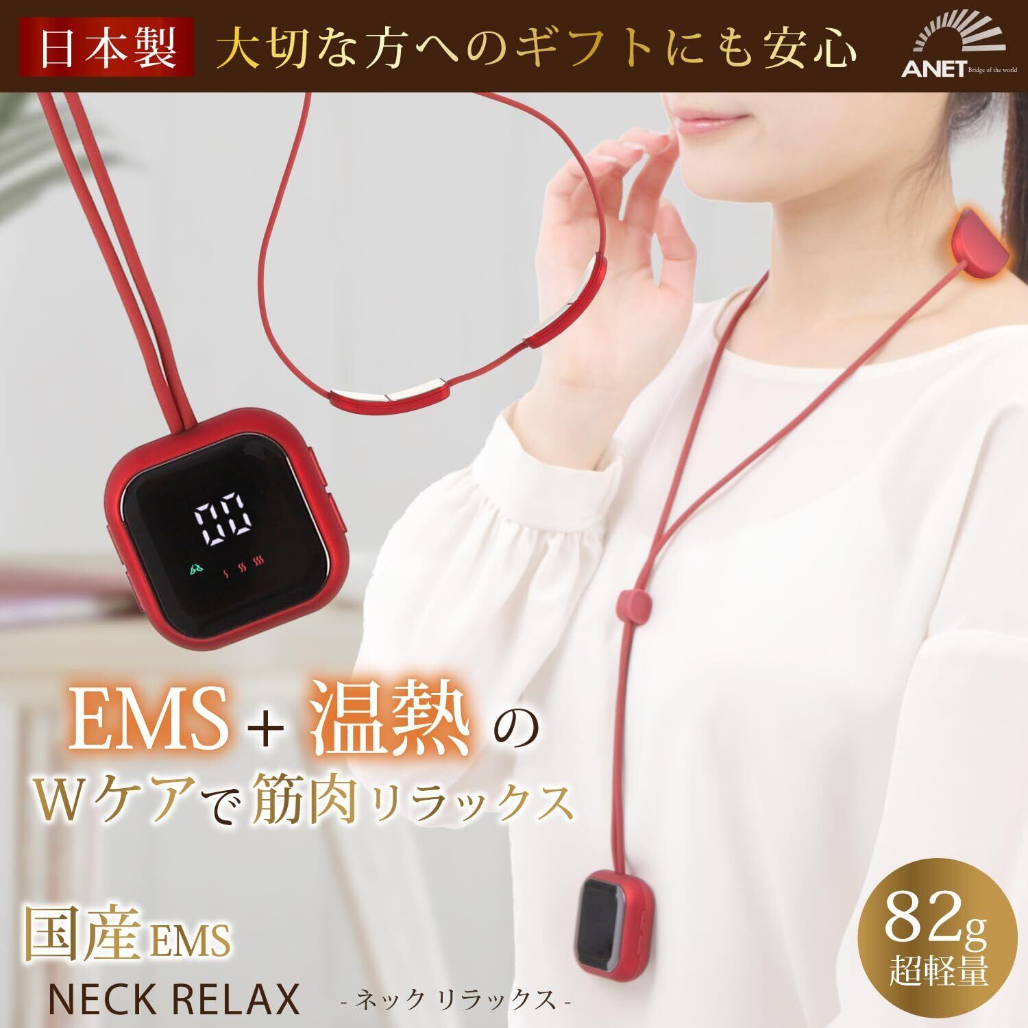 【日本製 薬剤師推薦】 ネックケア EMS 温熱 ネックリラックス NECK RELAX 5種類モード 19段階強度調節 温熱モード付き プレゼント ギフト ワイヤレス USB-C充電 ケーブル付属 ANET 軽量82g 日本製