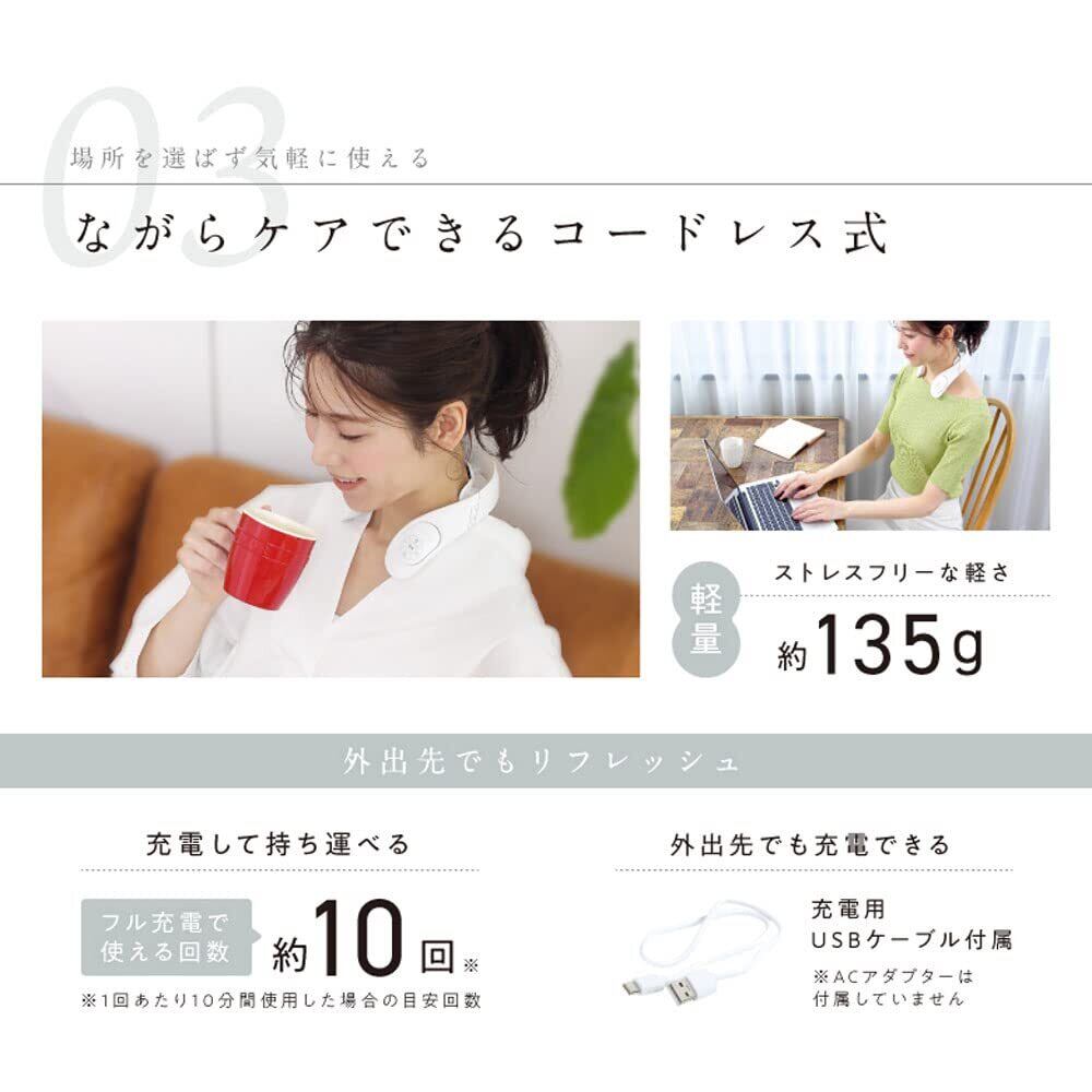 【気軽に首ケア】いつでも、どこでも、気軽に首ケアができる Ele Neck(エレネック)。コードレス式なので場所を選ばず気軽に使用でき、何かをし"ながら"ケアができます。