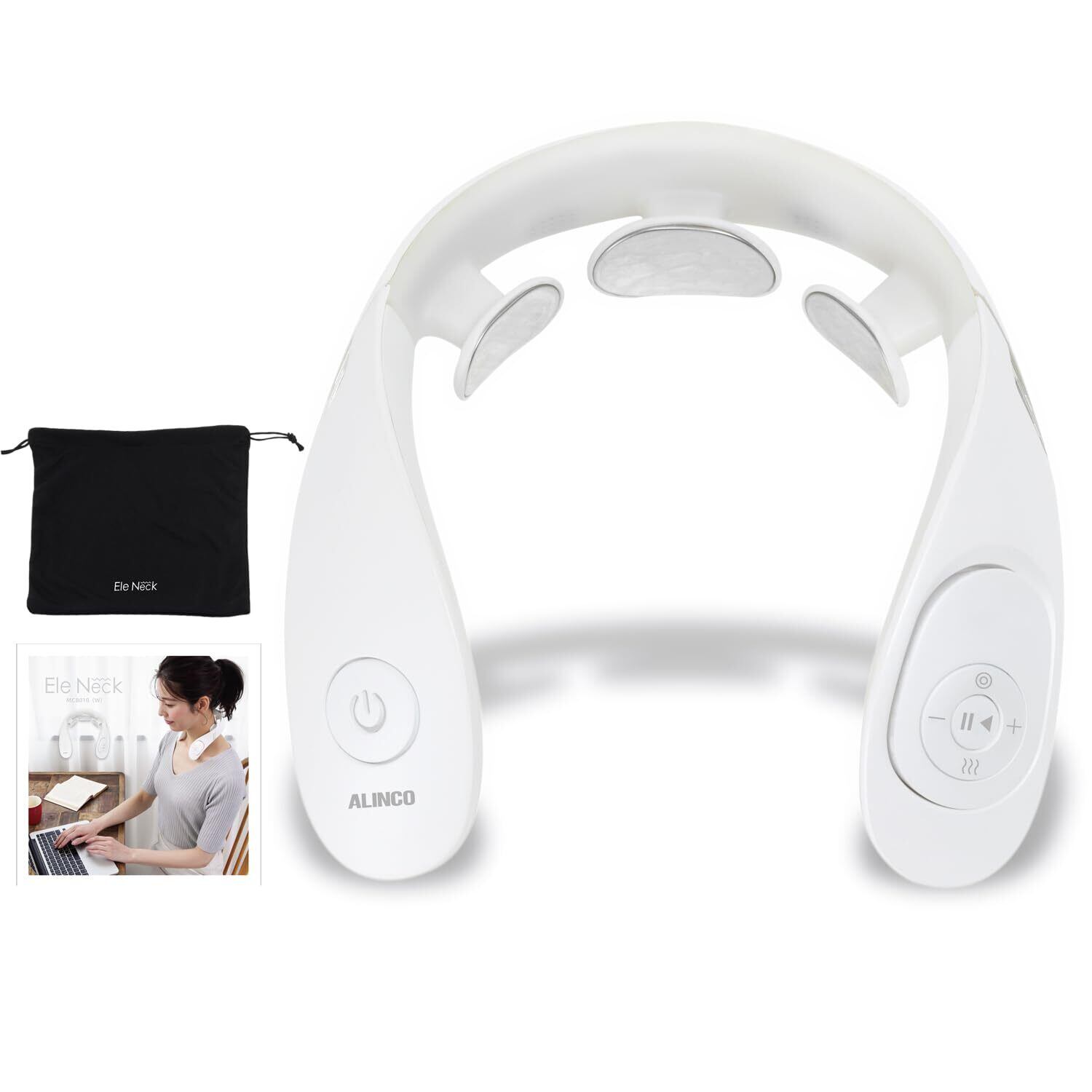 ALINCO(アルインコ) Ele Neck エレネック コードレス USB充電式 EMS 首ケア ヒーター機能搭載 10分オートオフタイマー 音声ガイダンス 小型 軽量 リモコン付き ホワイト MCB010W