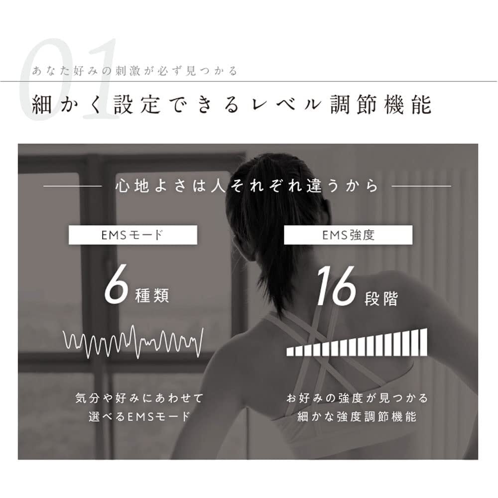【自分に合った刺激を見つける】心地よさは人それぞれ違うので、6種のEMSモードと細かく設定できる16段階のEMS強度調節で自分に合った刺激がきっと見つかります。