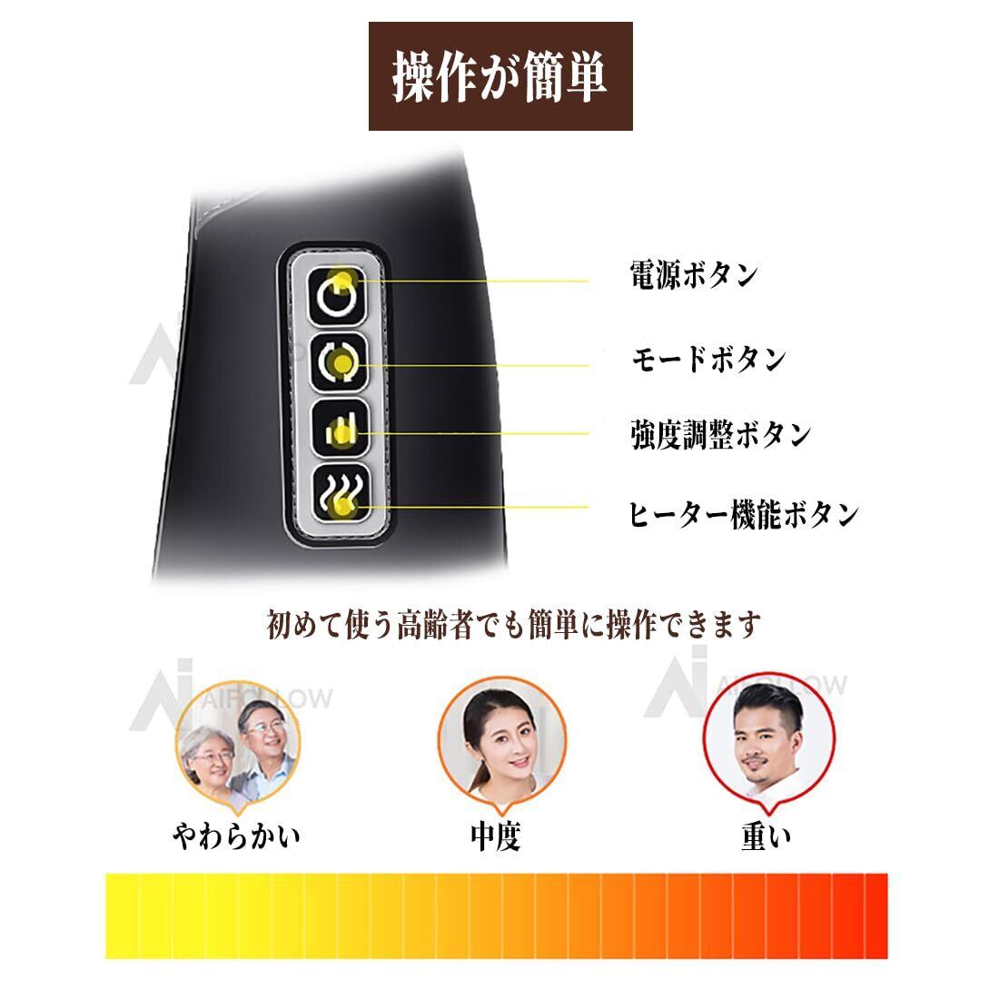 【操作が簡単で広く適用できる】本体には4つのボタンが付いていて、簡単に操作できるのでスイッチを自由に制御でき、正反転、加熱、強度が あり、お年寄りでも簡単に使えます。肩、首、背中、腰、足などに适しています。贈り物には各種の祝日が適 して います,父の日、母の日、敬老の日や誕生日など,男性、女性、職場、旅行、家庭、オフィス、出张、车内など様々なシーンに広く使用することができます。本製品は超高 性価格比で市場に人気があるため、販売台数は革新的に高い。