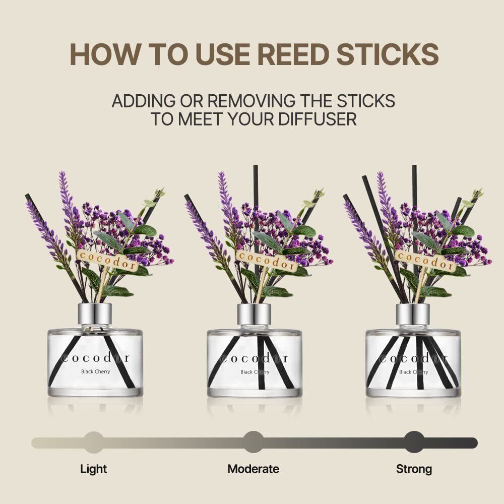 【香りの強さも、自分らしく】 スティックの本数で香りの濃さを自由に調整可能。約60日間、やさしいアロマが空間に広がります。香りが弱くなったらスティックの上下を入れ替えるだけで、ふたたび豊かな香りが広がります。