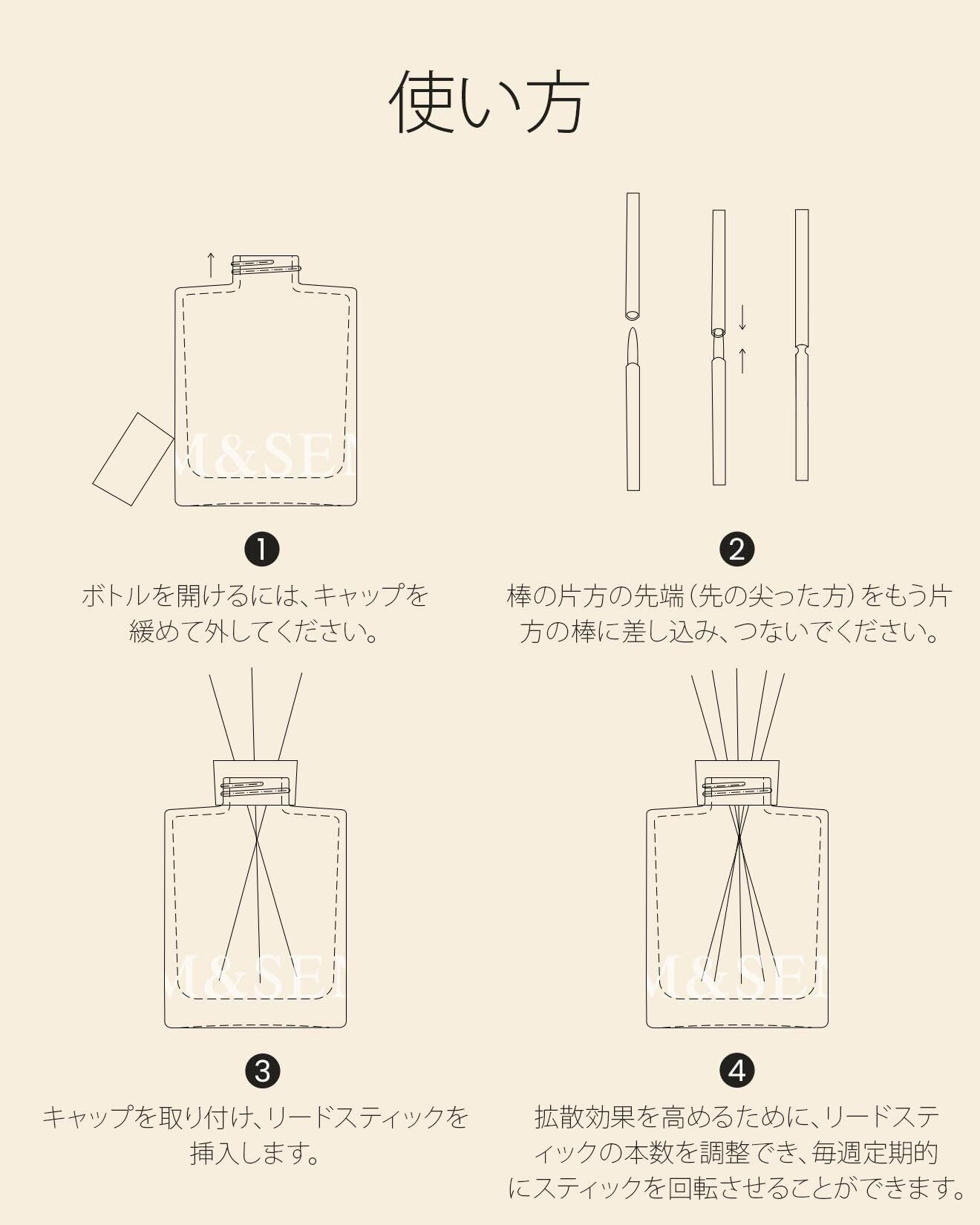 「長持ちする香り」 - M&SENSEリードディフューザーセット(大容量500ml)は、最大6カ月間香りが持続します。改良版·中空フレグランスディフューザースティックは、より強い香りの拡散能力とより広い香りの拡散範囲を誇ります。(ご注意ください。当社のリードスティックはご自身で取り付けて組み立てる必要があります。2 本のスティックを 1 本に組み合わせてご使用ください。)