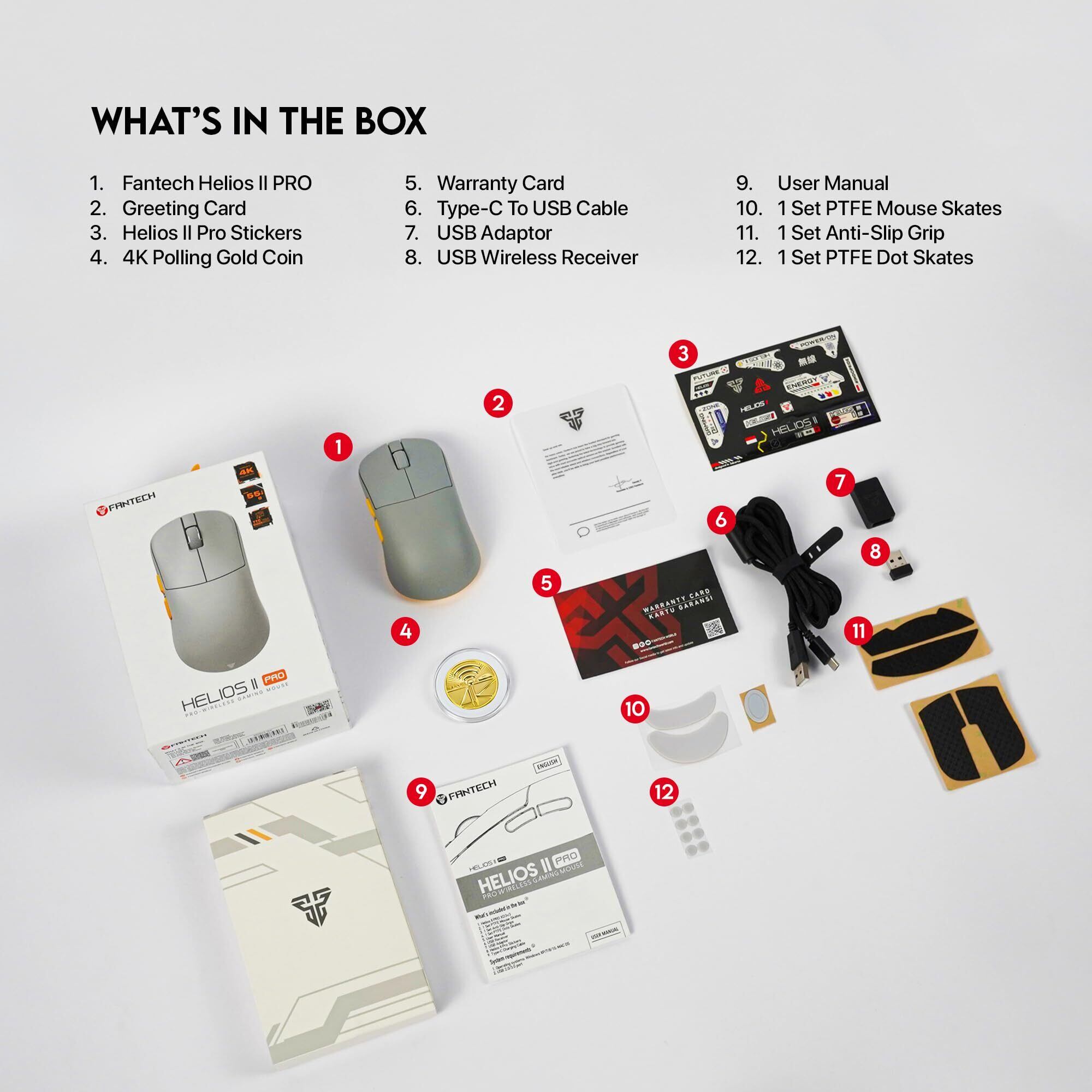 【国内正規品】Fantech(ファンテック) HELIOS Ⅱ PRO 4K 有線 / 2.4GHz ワイヤレス 両対応 ゲーミングマウス 55g 軽量 PixArt 3395センサー 6ボタン TTCゴールドオプティカルスイッチ 4000Hz ポーリングレート 4Kドングル付属 ソール付属 グリップテープ付属 日本限定カラー ホワイト