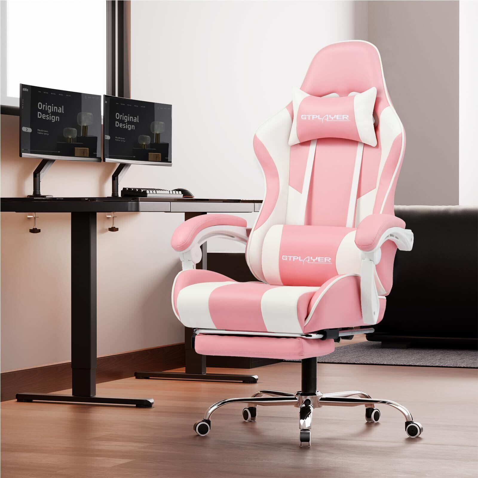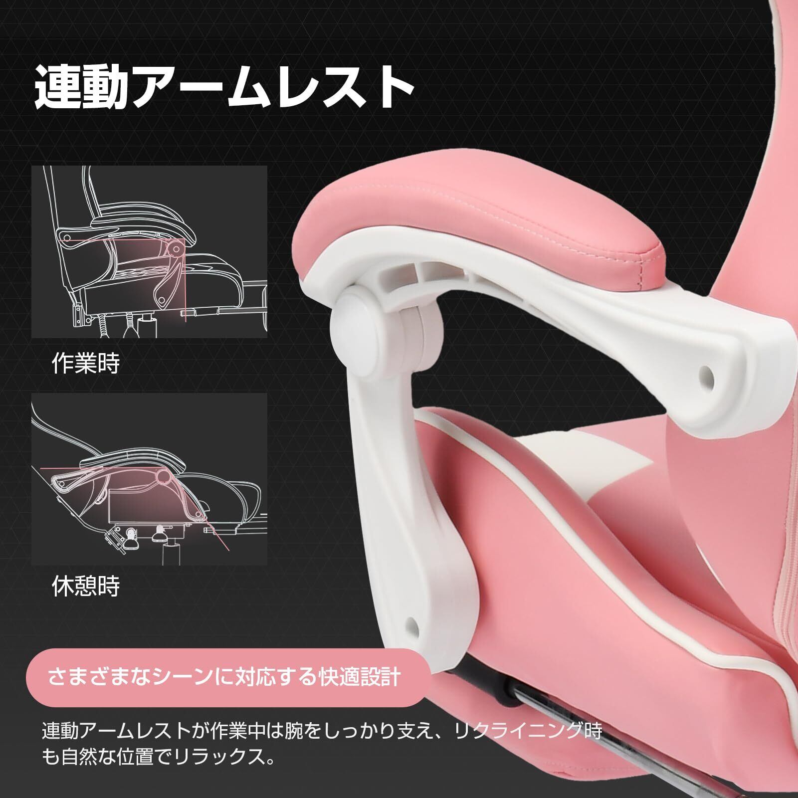 【新着商品】GTPlayer ゲーミングチェア オットマン付き ゲームチェア 140°リクライニング ハイバック ヘッドレスト ひじ掛け ランバーサポート 蒸れない座面 PUレザー 気孔付き皮革 テレワーク 椅子 パソコンチェア イス gaming chair 电竞椅 ピンク PL800