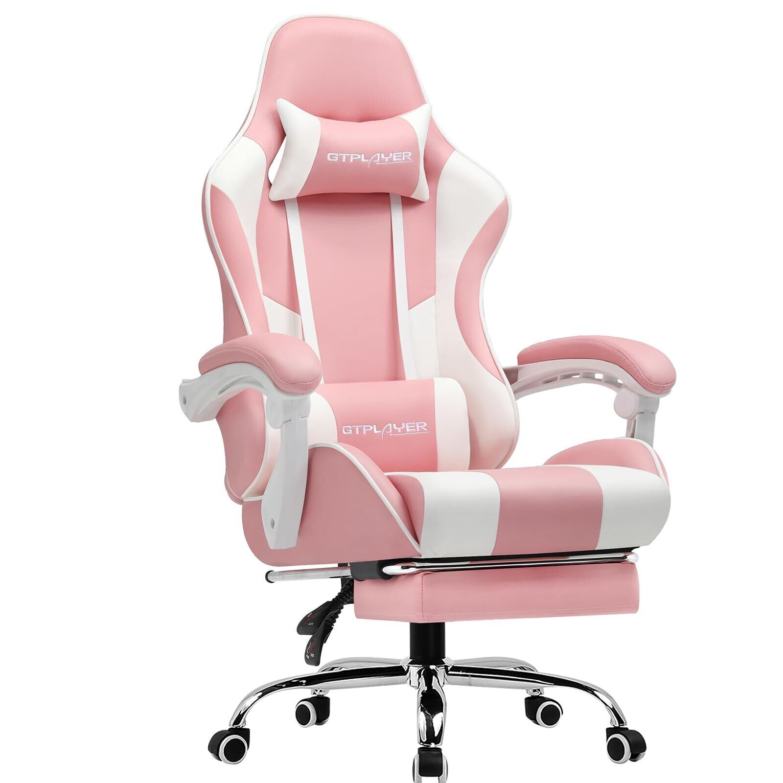 GTPlayer ゲーミングチェア オットマン付き ゲームチェア 140°リクライニング ハイバック ヘッドレスト ひじ掛け ランバーサポート 蒸れない座面 PUレザー 気孔付き皮革 テレワーク 椅子 パソコンチェア イス gaming chair 电竞椅 ピンク PL800