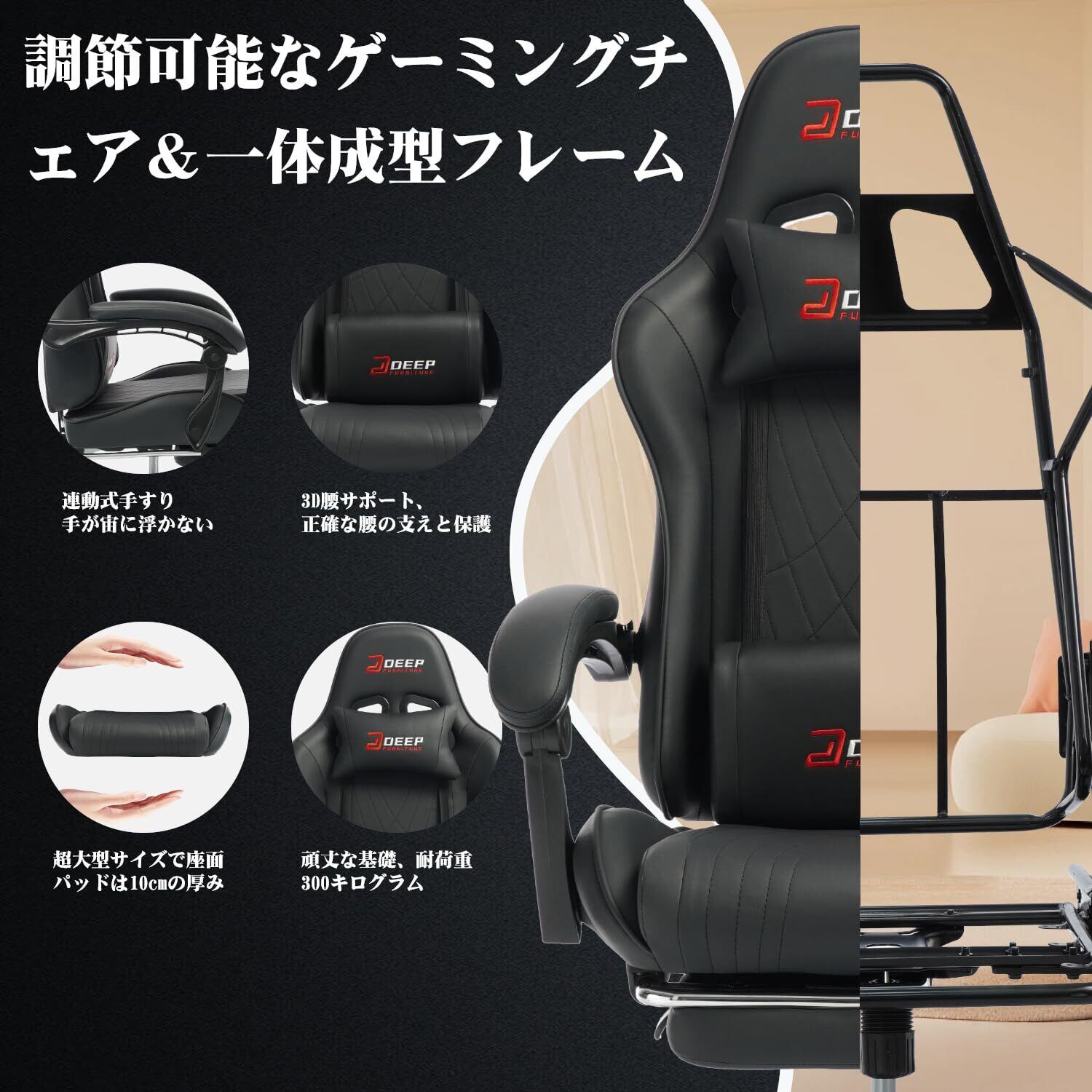 DEEPfurnitureゲームチェア フットレスト付き オフィスチェア ゲーミングチェア 連動アームレスト オフィスデスクチェア ゲーム専用チェア eスポーツライフ 家庭用アイテム (1001G-ブラック)