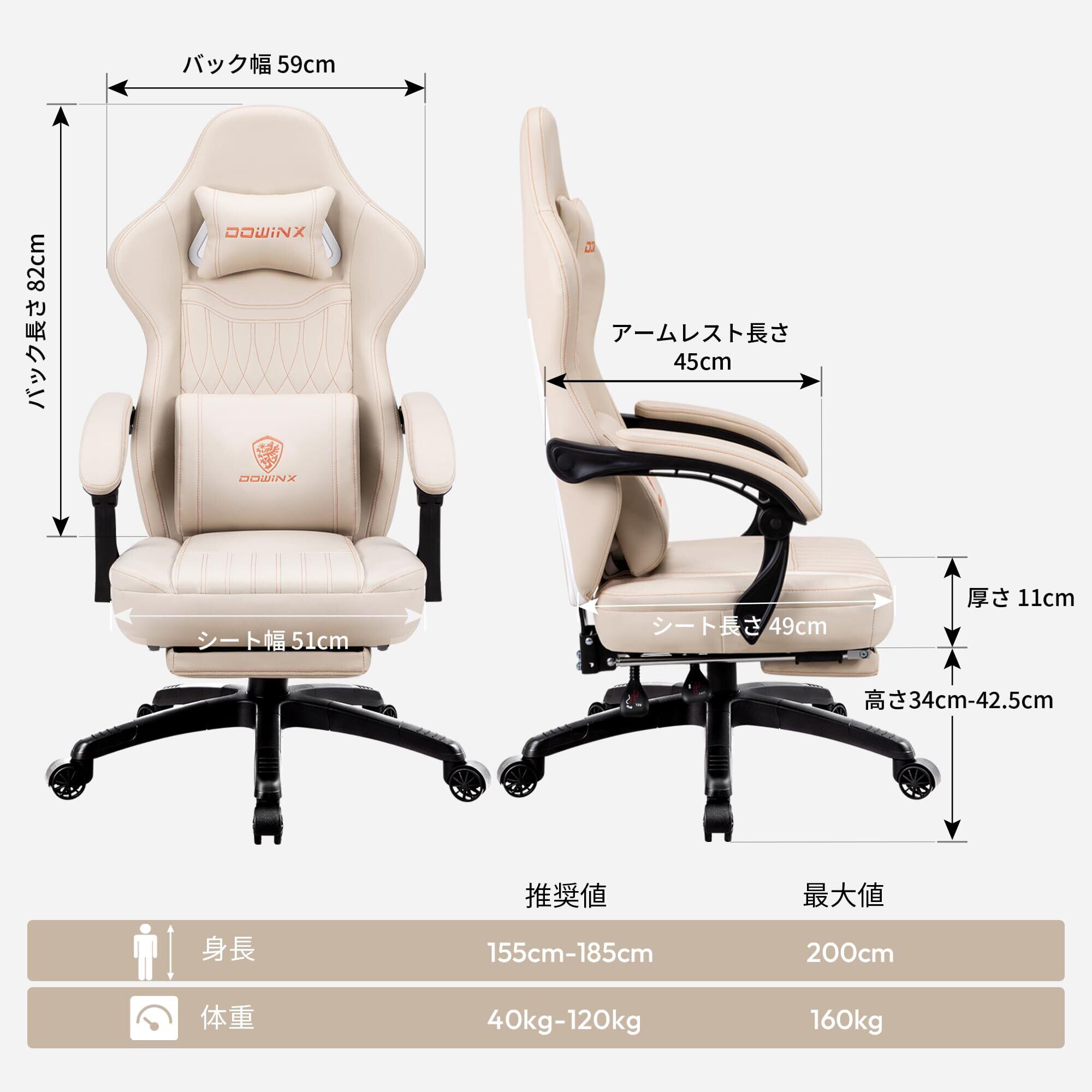 【特価商品】Dowinx ゲーミングチェア オフィスチェア テレワーク ワークチェア PUレザー 通気性 高反発 リクライニング140度 ポケットコイルクッション 疲れない アイボリー LS-665704A