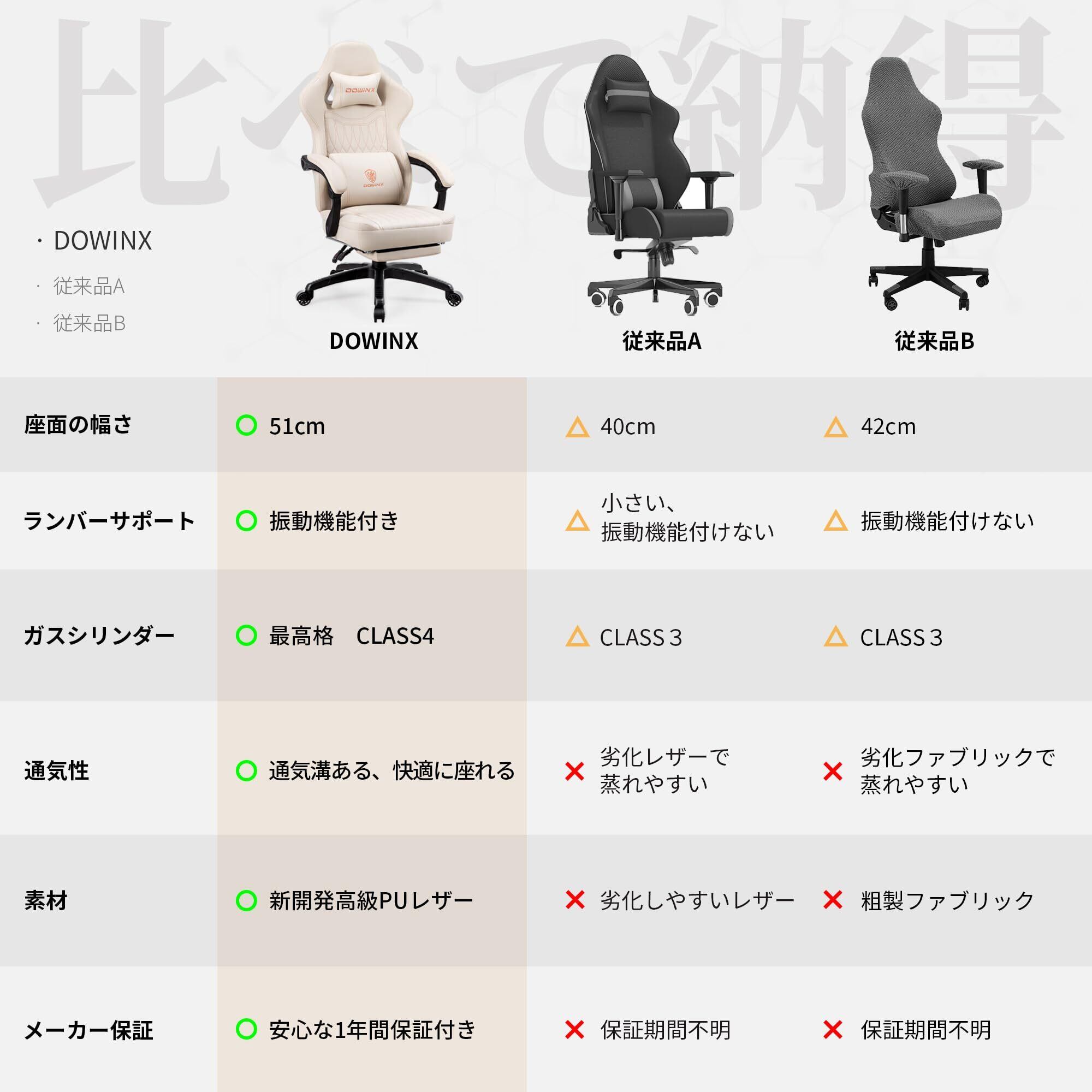Dowinx ゲーミングチェア オフィスチェア テレワーク ワークチェア PUレザー 通気性 高反発 リクライニング140度 ポケットコイルクッション 疲れない アイボリー LS-665704A
