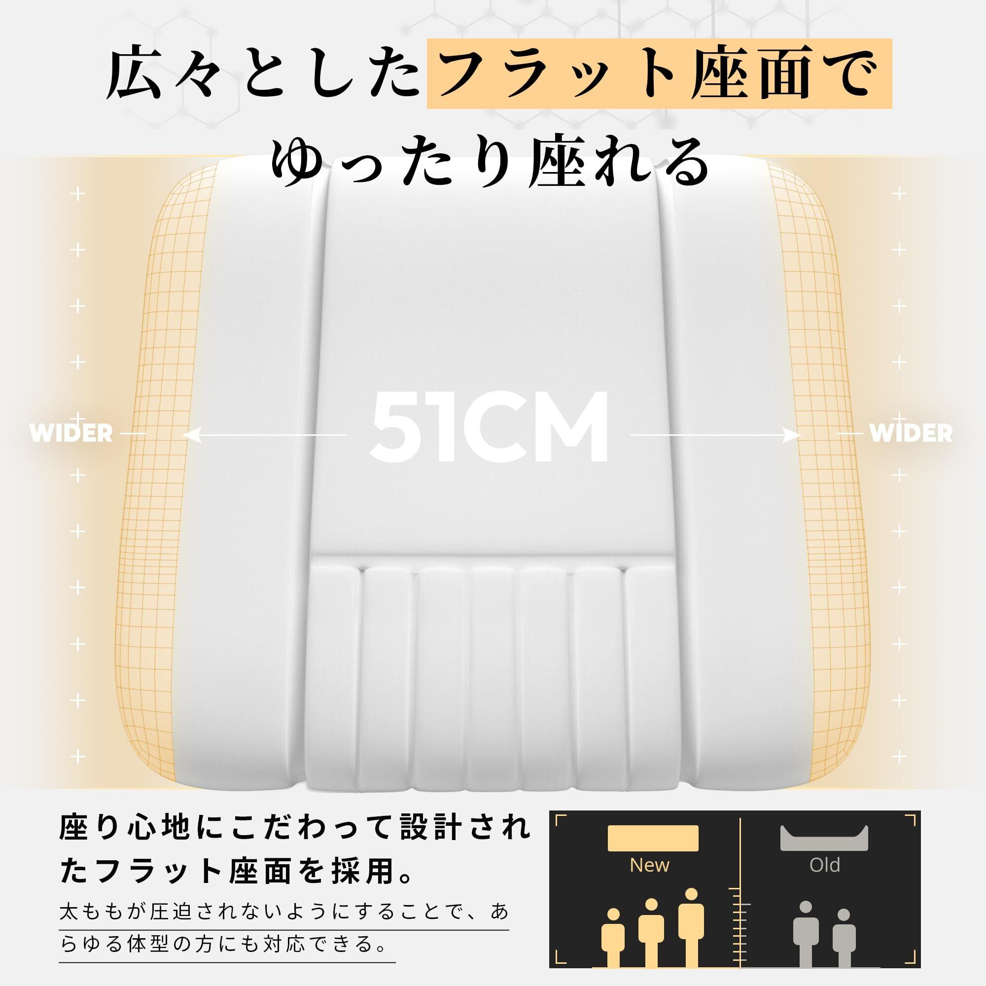 【長時間座っても疲れない機能性】 柔らか過ぎず硬過ぎないコイルスプリングを使用し、長時間のオフィス作業やテレワークでの疲労感を軽減します。バイオニック曲線の背もたれと腰クッションが腰椎をしっかりサポートし、快適な座り心地を提供します。新開発の炭素繊維レザー(ブラック)を採用し、清潔感溢れる白いゲーミングチェアもご用意しています。