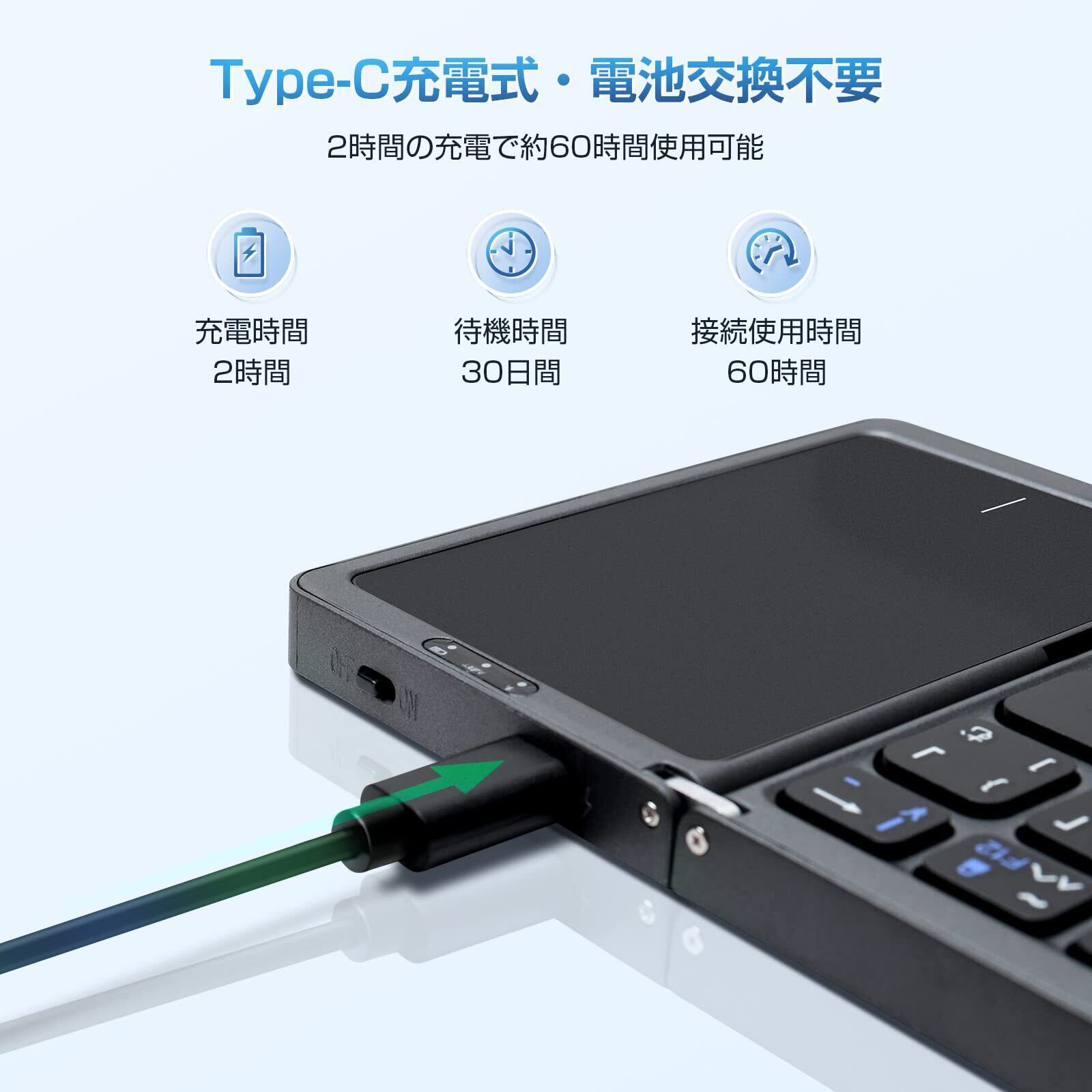 Ewin 新型 Bluetooth キーボード 折りたたみ ワイヤレス タッチパッド搭載 日本語配列 かな入力 3台デイバイス登録 ワンタッチ切替接続 Windows Mac iOS 対応 Type-C充電式 ブルートゥース キーボード iPad ノートPC パソコン タブレット スマホ用 日本語説明書付