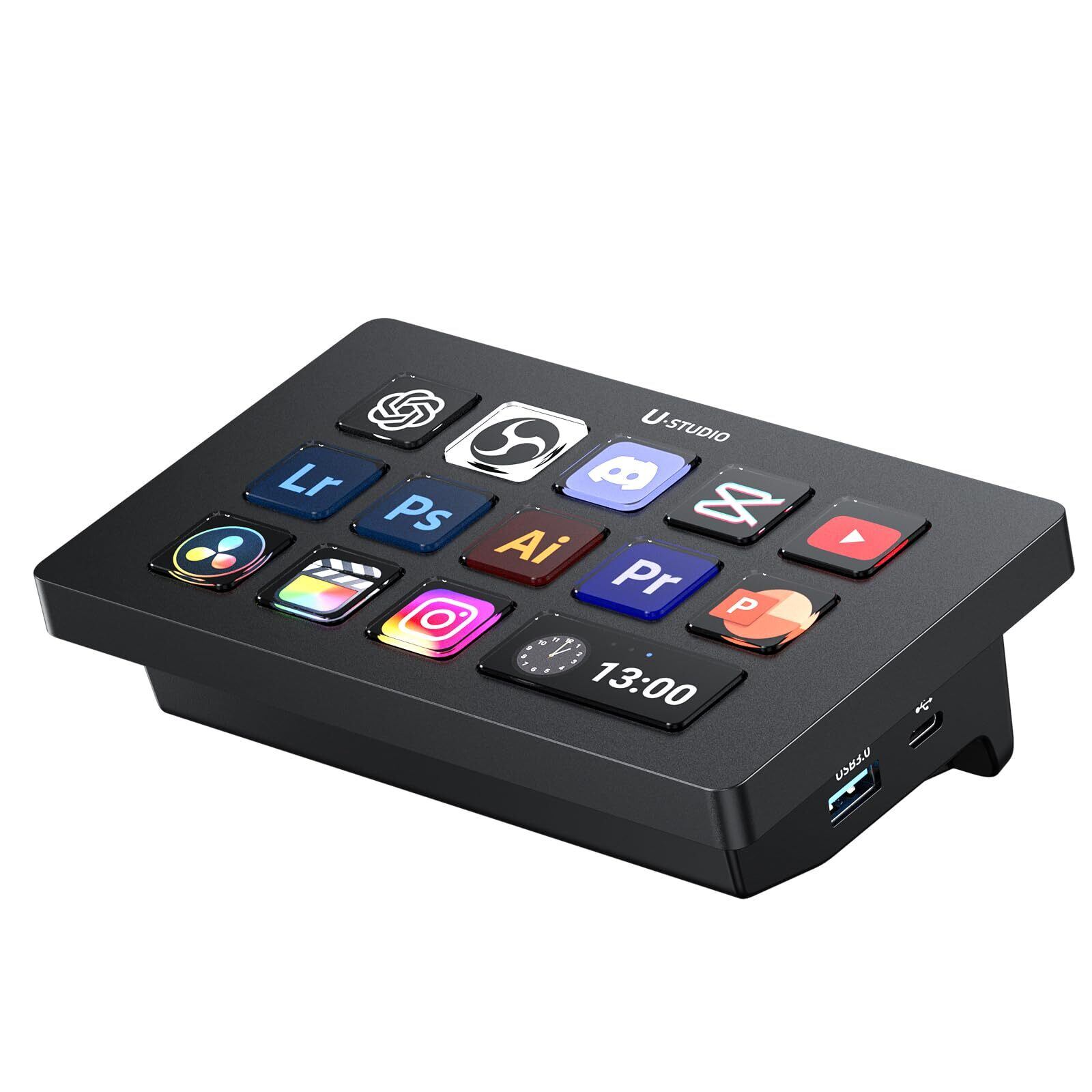 Ulanzi D200H Stream Controller ストリーム コントローラー【2025年新版】日本語対応 7-in-1 拡張ポート USB3.0高速転送 PD急速充電 13個カスタム可能なキー AIオフィスアシスタント ライブ配信 コンテンツ作成用 ドラッグ&ドロップで設定可能 Stream コントローラー OBS/Teams/YouTube/Zoom等をコントロール MacとPC対応