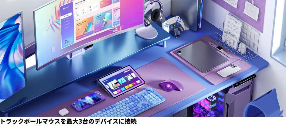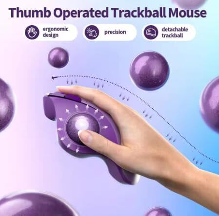 【在庫セール】seenda 紫トラックボールマウス Bluetooth&2.4GHz両対応 3台同時接続 静音 USB充電式 930mAh大容量電池 マウストラックボール 5段階DPI切替 進む/戻るボタン 親指タイプ Windows/Mac/iPhone/iPad/Android対応 purple おしゃれ