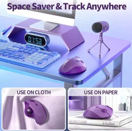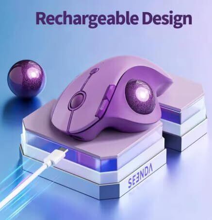 seenda 紫トラックボールマウス Bluetooth&2.4GHz両対応 3台同時接続 静音 USB充電式 930mAh大容量電池 マウストラックボール 5段階DPI切替 進む/戻るボタン 親指タイプ Windows/Mac/iPhone/iPad/Android対応 purple おしゃれ