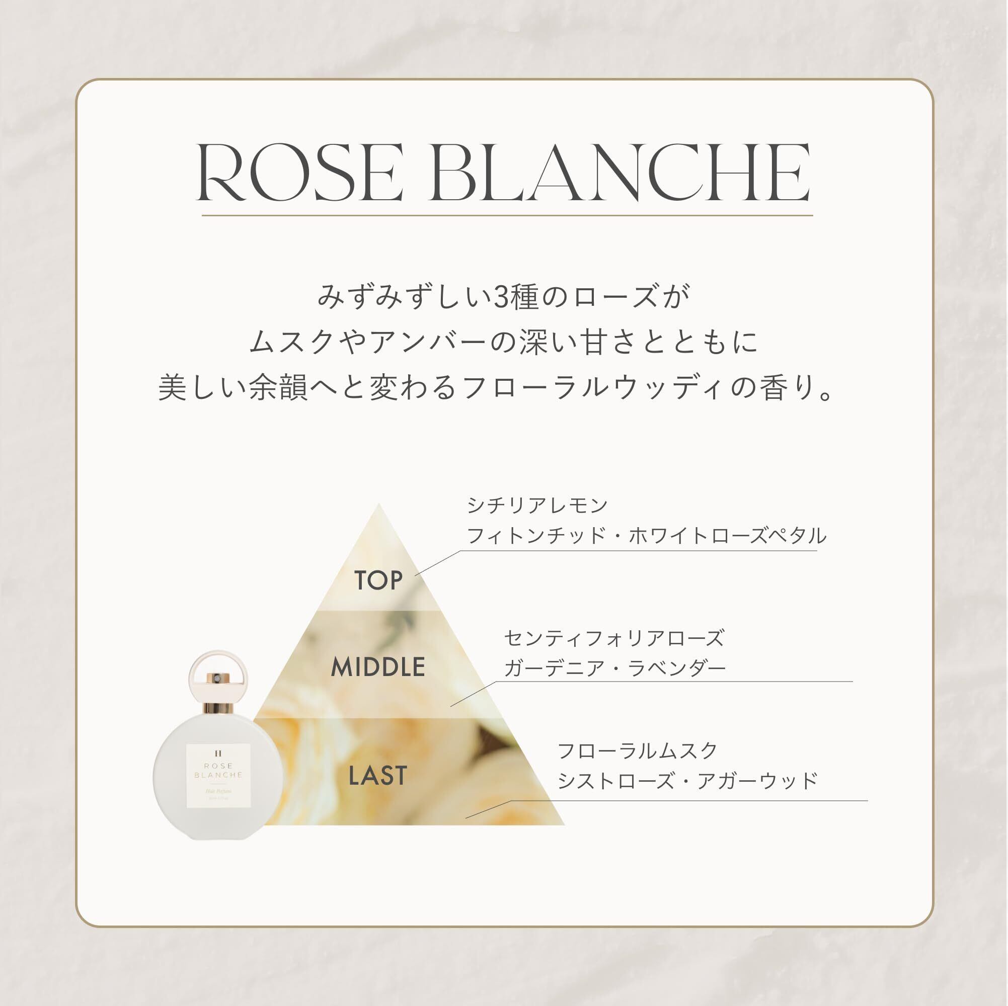 みずみずしい3種のローズがムスクやアンバーの深い甘さとともに、美しい余韻へと変わるフローラルウッディ。エレガントな華やかさとうっとりするほどロマンティックな奥行きを感じさせる香り。