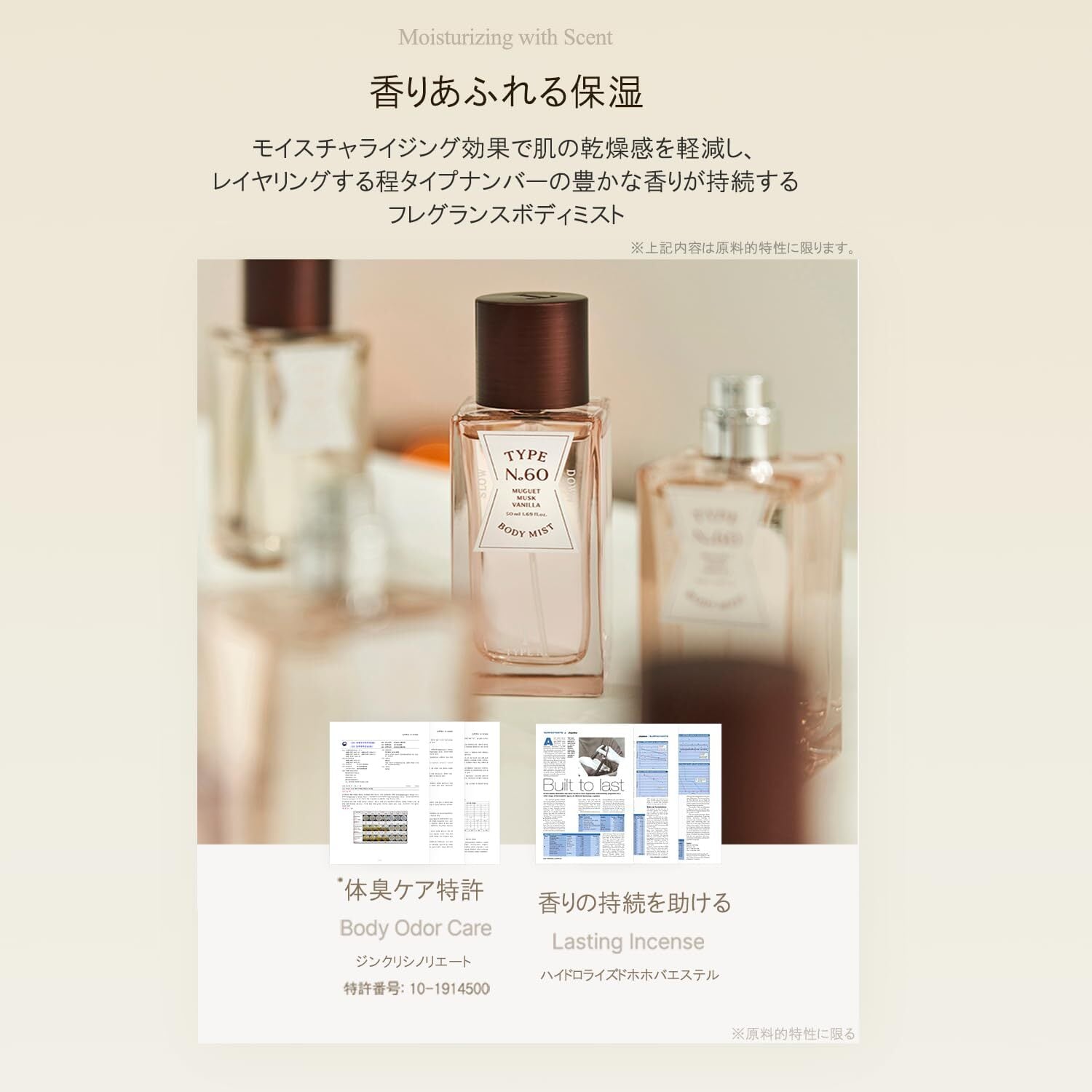 【数量限定】【 TYPE No. 】 タイプナンバー No.60 SLOW DOWN ボディミスト 50ml ソウル ウォーター 韓国コスメ 石鹸の爽やかさとバニラの甘さやほのかな暖かさを感じる香り バニラ 石鹸 爽やか ボディスプレー ボディ用化粧水 フレグランス 香水 パフューム 長時間持続 香り長持ち 全身 ボディ ギフト 誕プレ プレゼント