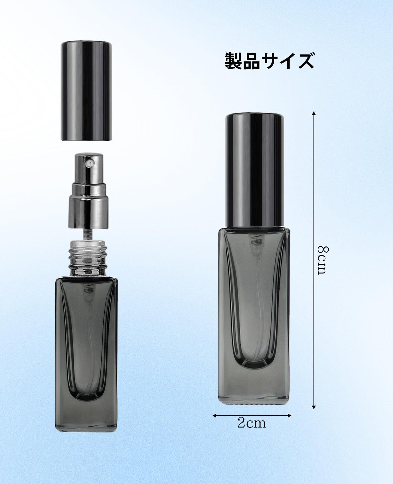 【ツール付属·漏れなく無駄遣いない完璧なセット】香水のブランドやノズルのタイプを問わず、ほぼ市販しているすべての香水にも対応できます。プッシュノズル、漏斗、スポイト三つ種類の香水分けツールを付属していて、お好みのツールを使って香水を簡単に詰め替えます。詰め替えの過程の中も香水を漏れることを完璧に避けます。