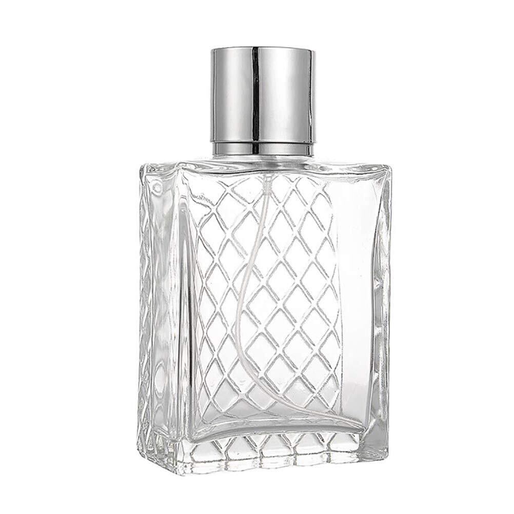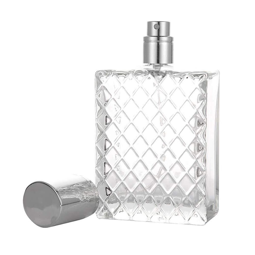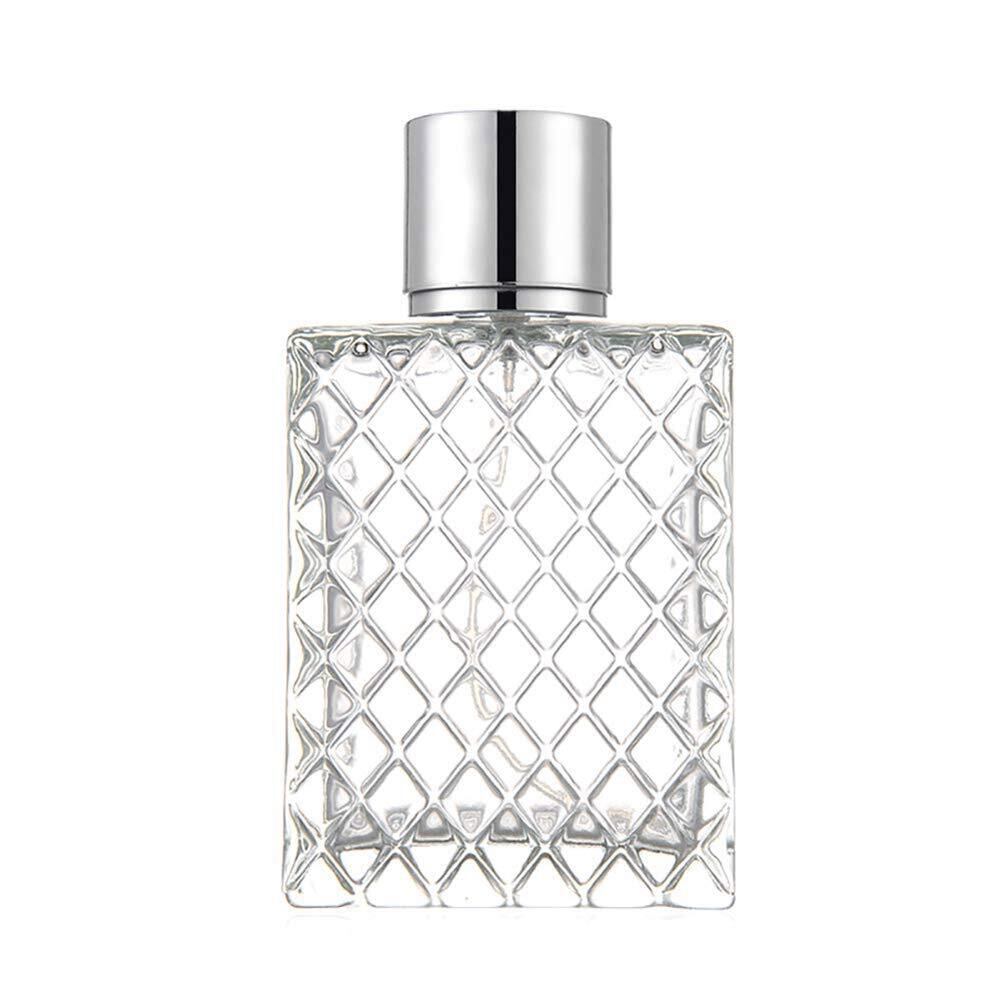 香水瓶、100Ml香水瓶の正方形、グリッドポータブルクリアトラベル詰め替え可能な香水ガラス空の瓶