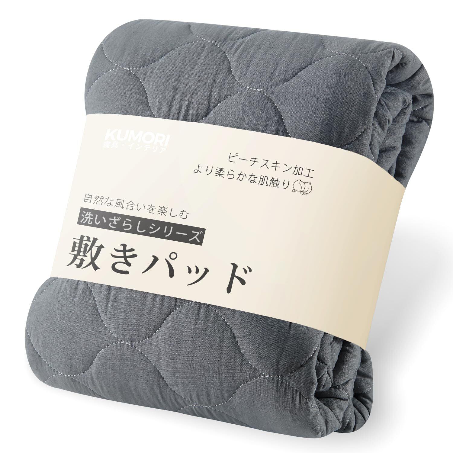 クモリ(Kumori) 柔らかい 敷きパッド シングル 洗いざらし ベッドパッド 耐久性が高い 洗える 吸湿速乾 抗菌 防臭 防ダニ TEIJIN中綿 オールシーズン ベッドシーツ ピーチスキン シワ加工 素肌にやさしい マットレスパッド 着脱楽々 ベッドマット 100X200cm ダークグレー