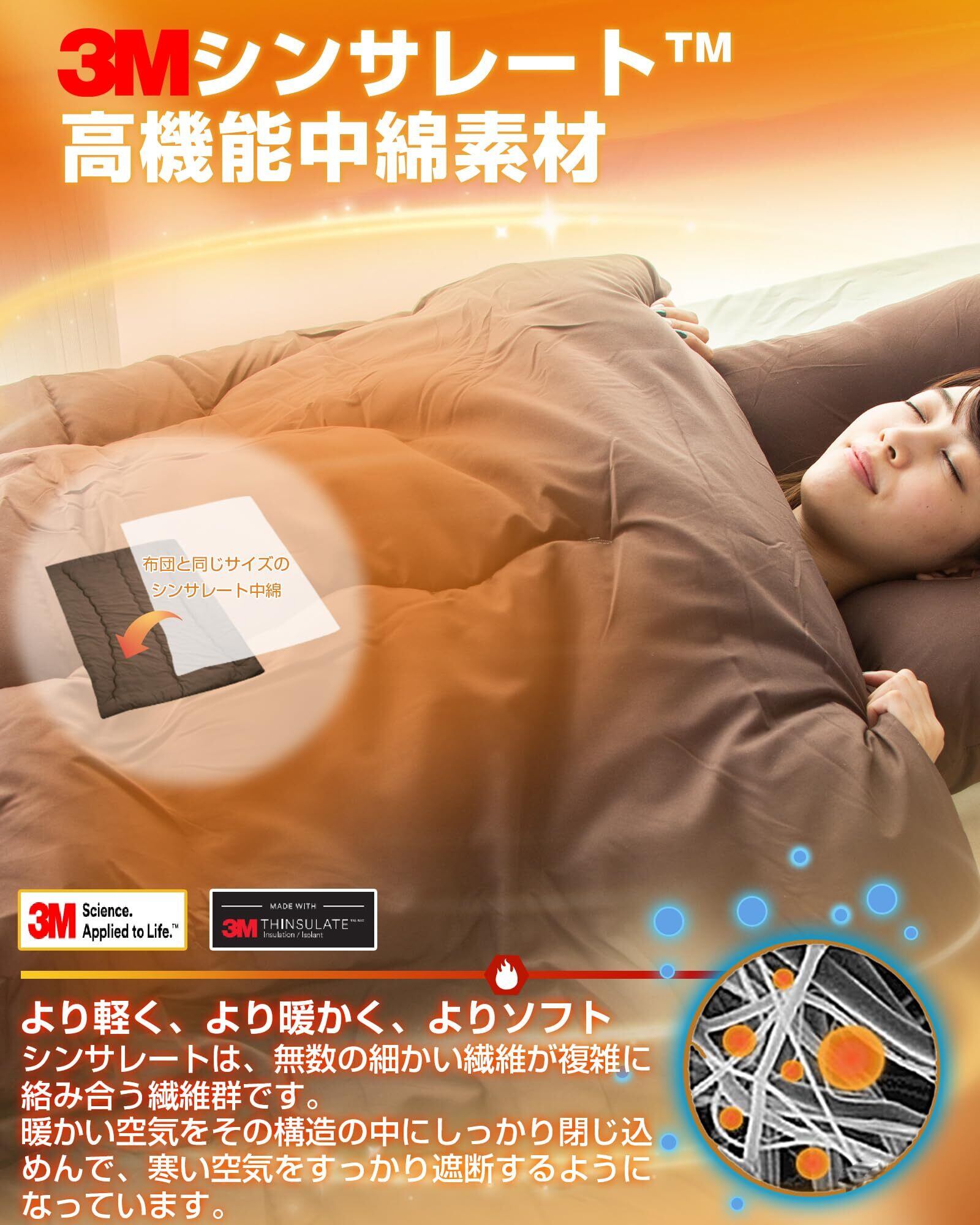 【羽毛より暖かいシンサレート】断熱素材シンサレート高機能中綿素材を使用して、繊維の隙間に大量の暖かい空気を含むことで優れた断熱性を実現しています。「薄くて、暖かい」という寝心地が実現できます。