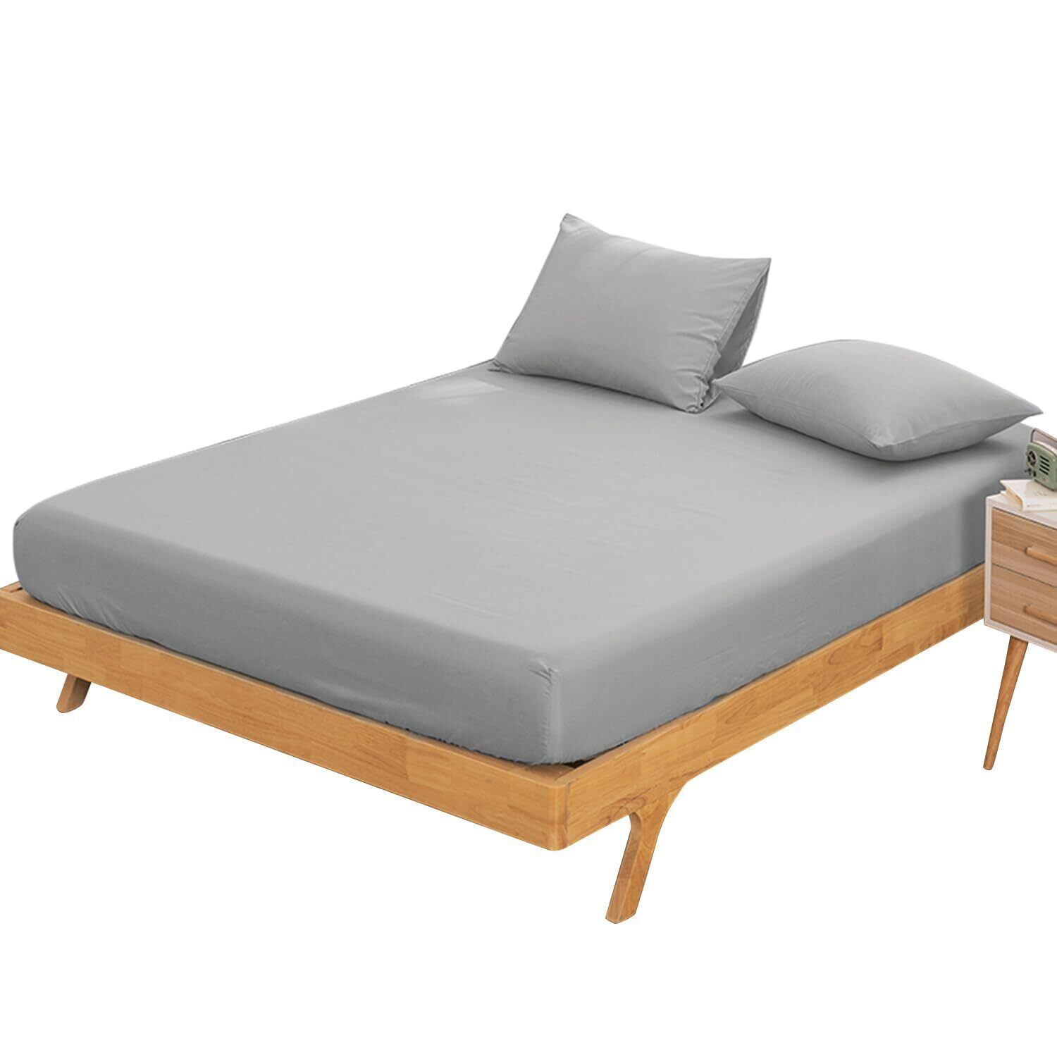 Vallein 防水シーツ 側面完全防水 シングル ボックス 全面防水 マットレスカバー おねしょシーツ セミダブル ダブル ボックスシーツ クイーン キング 大人用 赤ちゃん ベッドシーツ 介護用シーツ ベビー 保育園 防ダニ 丸洗い可能(シングル·ライトグレー·100*200)