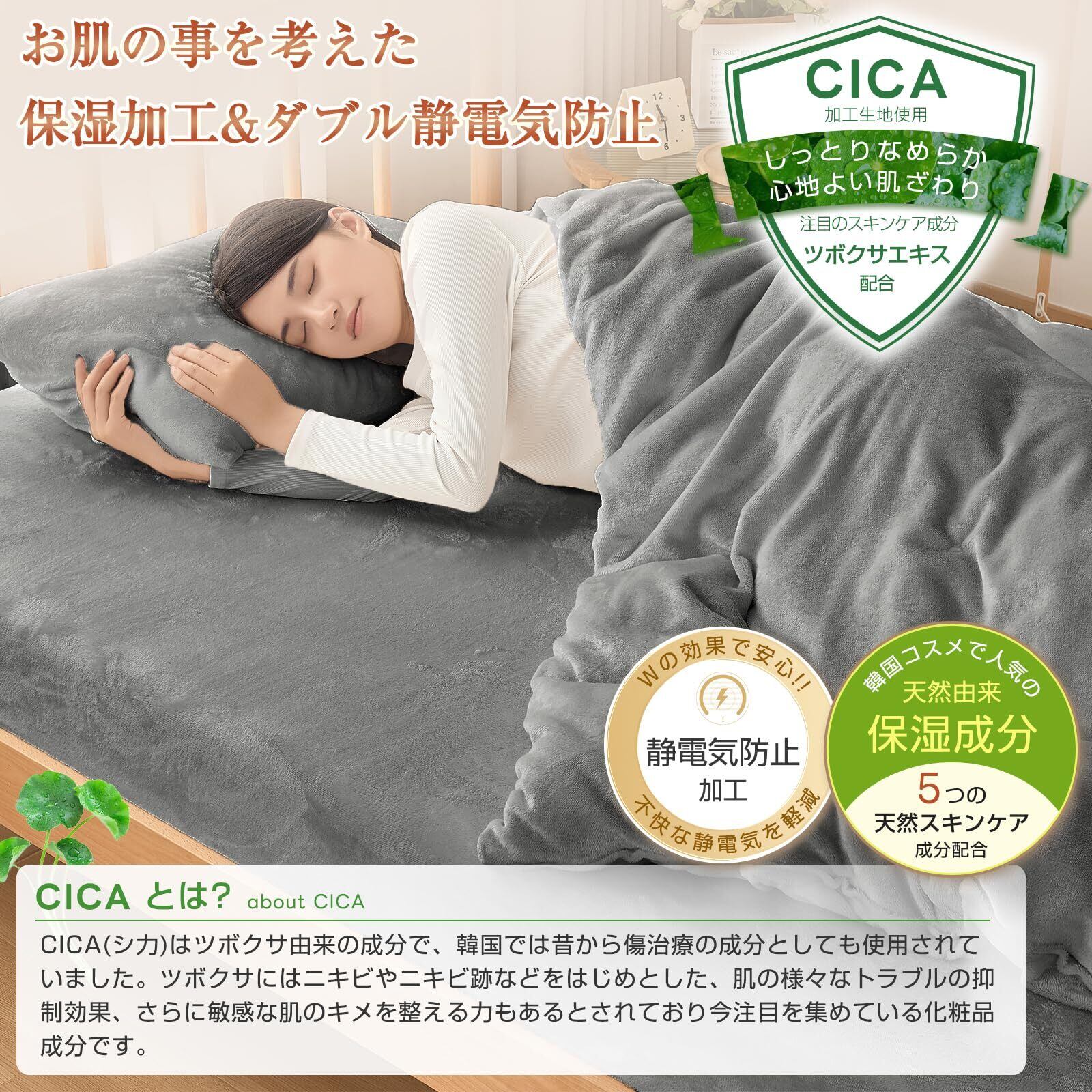 【CICA保湿成分コーティング】コスメ業界で話題のCICA(ツボクサエキス)成分を布団カバーの生地にも採用。静電気を軽減させ、ホコリや花粉等が付きにくくなっています。天然保湿成分で従来の防電気薬剤加工より長く持続します。生地の柔らかさも引き立たせ、肌の保湿・肌荒れ防止にも役立ちます。