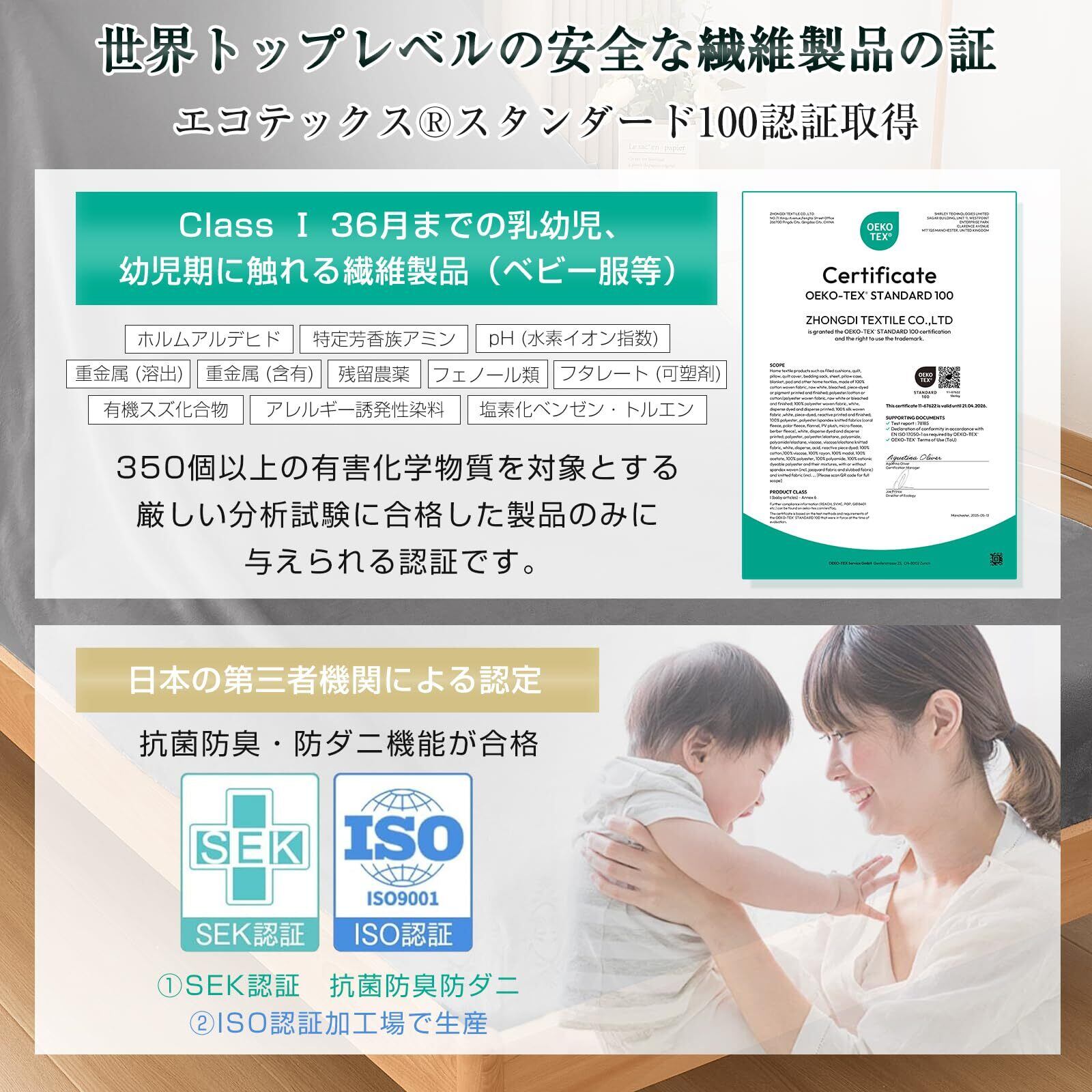 【品質・エコテックス規格】のボックスシーツは日本国内で企画・デザインを行い、繊維製品が高い安全性と環境基準を満たすことをする認証制度、エコテックス規格100の工場で製造。敏感なお肌の方にも安心、安全で健やかな眠りをお届けします。【仕様】ボックスシーツサイズ:シングル・100×200×マチ30cm 素材:極細フランネル生地(CICA保湿加工+光触媒抗菌加工) 全週ゴム付きで、着脱簡単、厚み3~28cmのマットレス/敷き布団にもぴったりフィット
