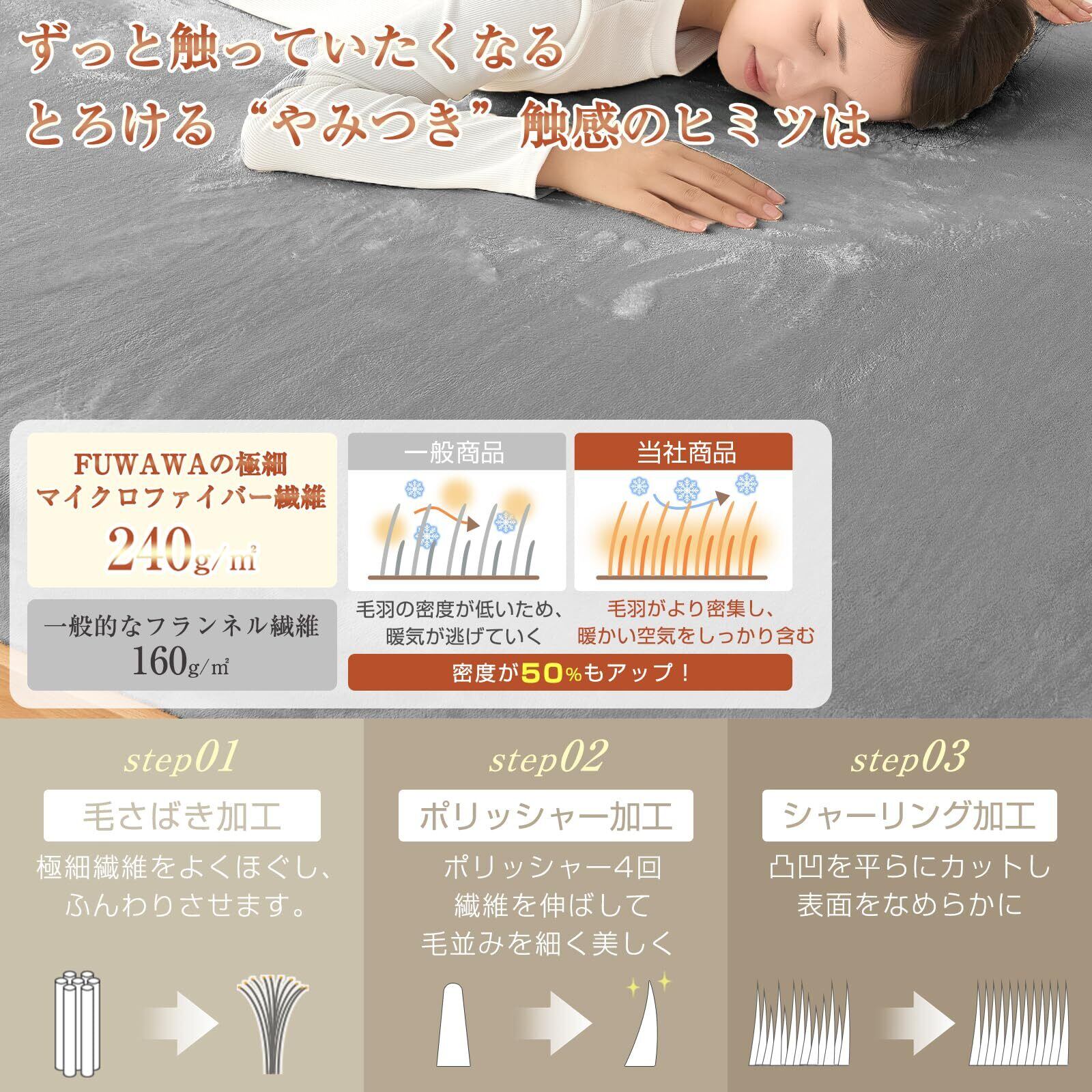 【とろけるような肌触り】肌触りを決めるのは、毛足の長さと細かさです。fuwawaボックスシーツは表裏とも220g/㎡高密度極細フランネル素材を採用、きめ細かい繊維はみっちり詰まっているからふわふわ柔らか、一度触るとやみつきです。