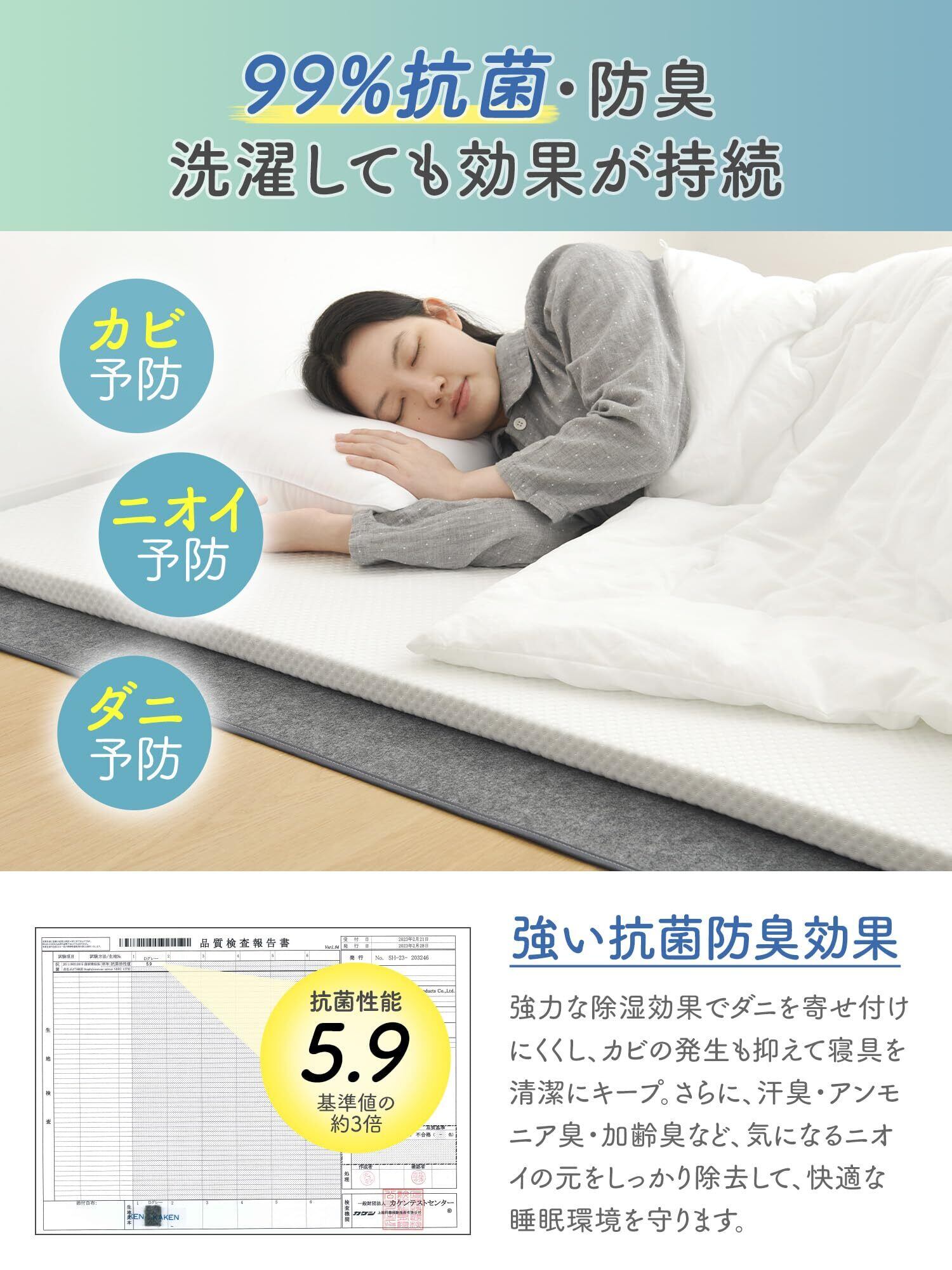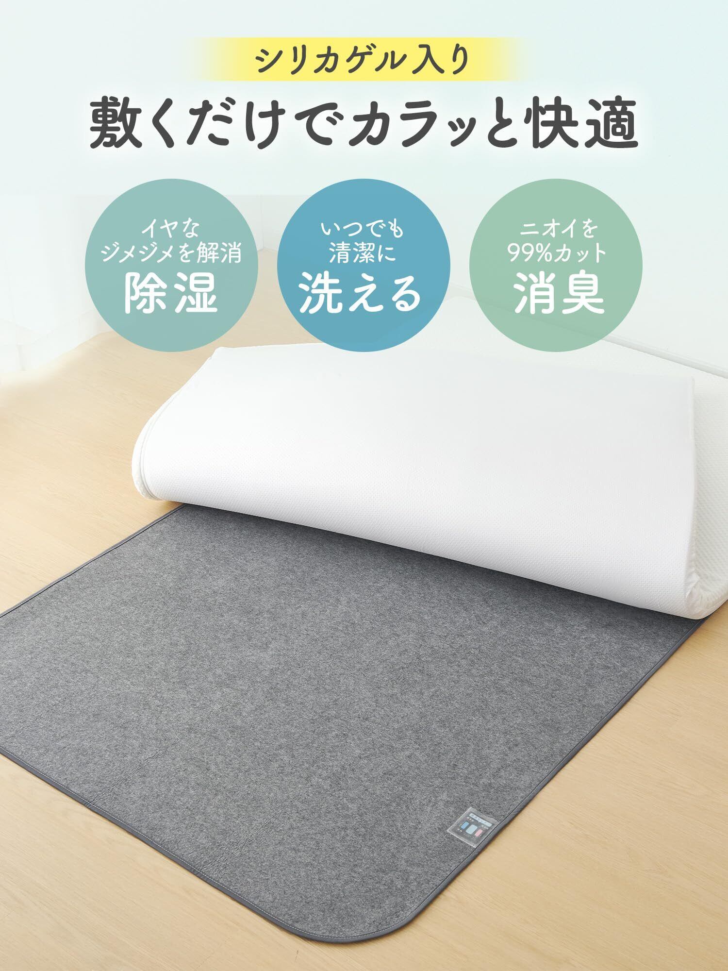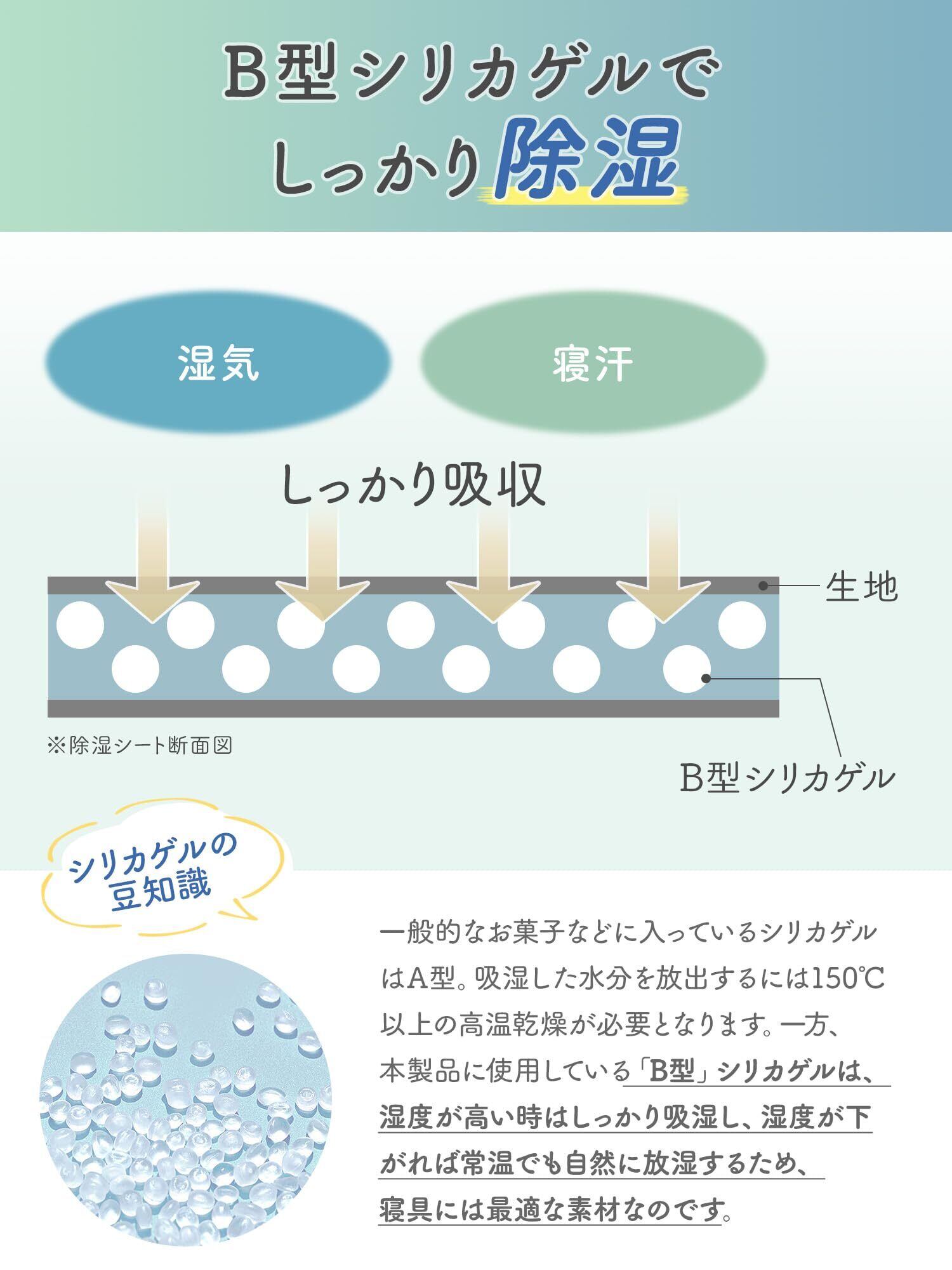 「カビ・湿気・結露対策」中材に除湿効果に優れたシリカゲルを使用して、床からの湿気や寝ている間に布団に染み込んだ汗などを吸収し、ジメジメな不快感を軽減してくれます。