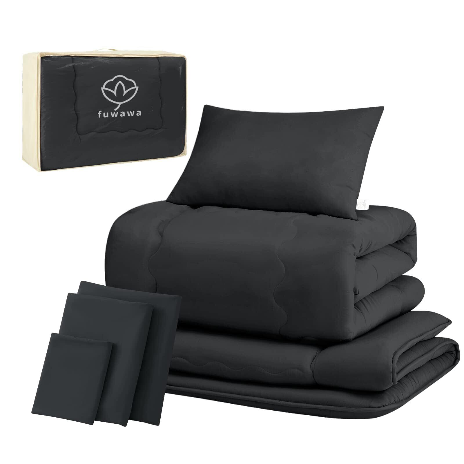 fuwawa 布団セット シングル 布団7点セット SEK認証 防臭 寝具セット【ボリューム増量 中綿1.6kg 掛け布団】 【高密度固綿入り三層 敷布団】 枕 洗える 布団カバー3点 来客用布団セット 収納ケース付き 組布団 ホコリが出にくい ふとんセット ピーチスキン加工 一年中使える ブラック
