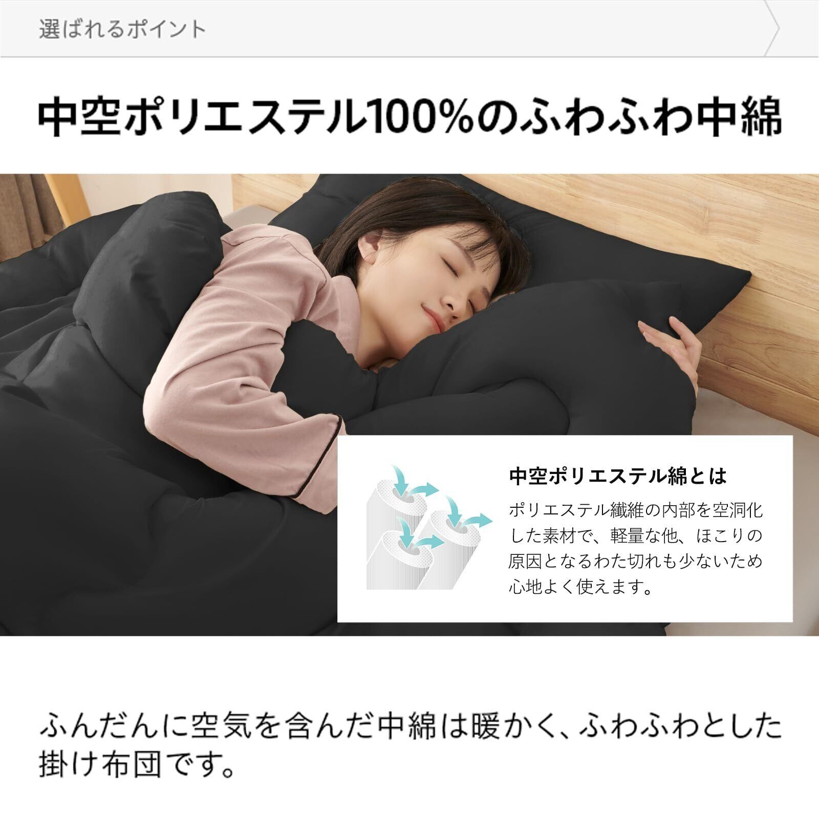 【通気性と保温性兼備の機能性掛布団】この掛布団は、ループ6か所の設計で移動時のずれを防止。通気性抜群の生地を使用しているため、蒸れにくく快適です。防臭加工も施されているので、いつも衛生的にお使いいただけます。保温性能も高く、冬場でも暖かく寝ていただける優れものです。機能性と快適性を兼ね備えた、1年中快適にお使いいただける掛布団です。