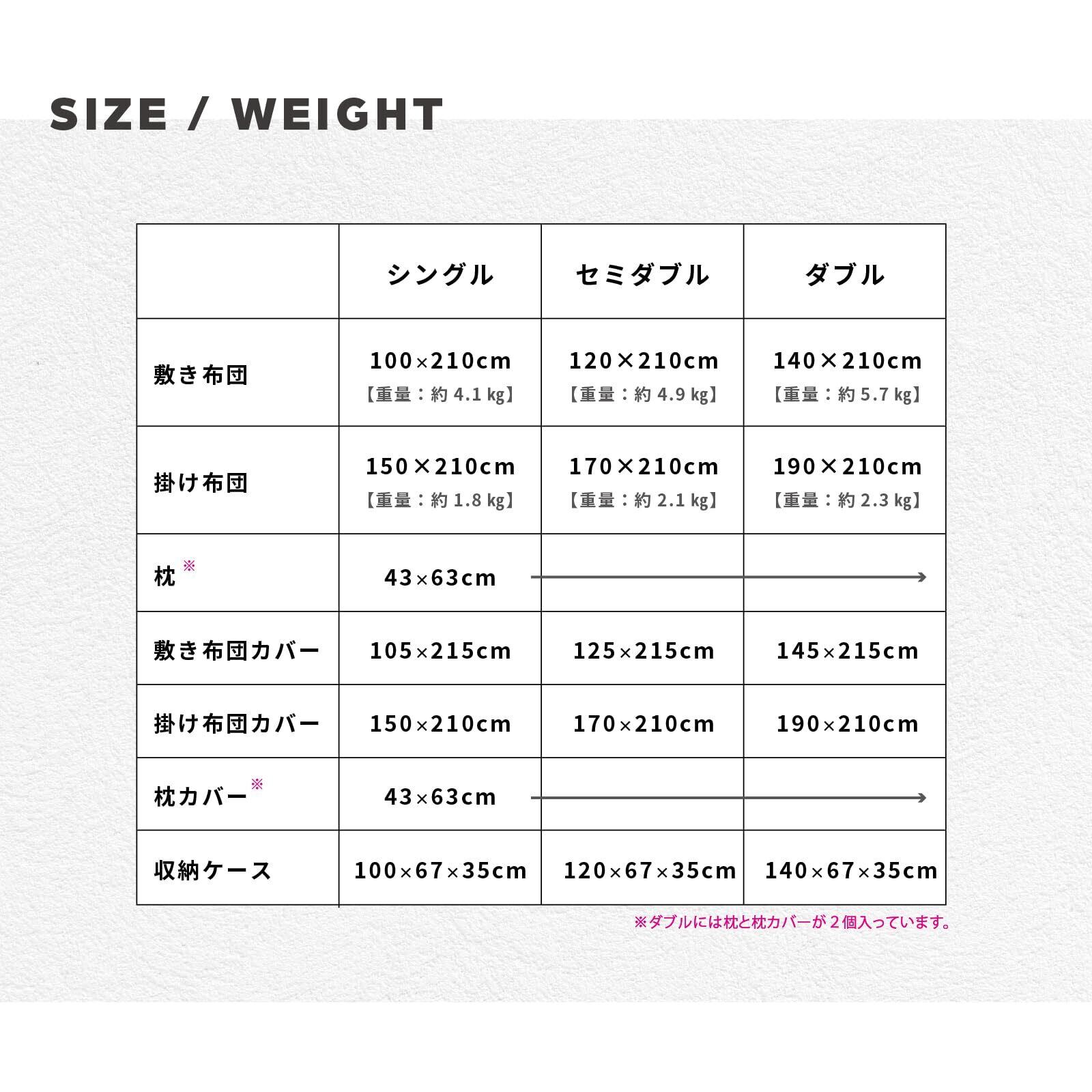 付属コンポーネント カバー, コンフォーター, 収納袋, 敷き布団, 枕