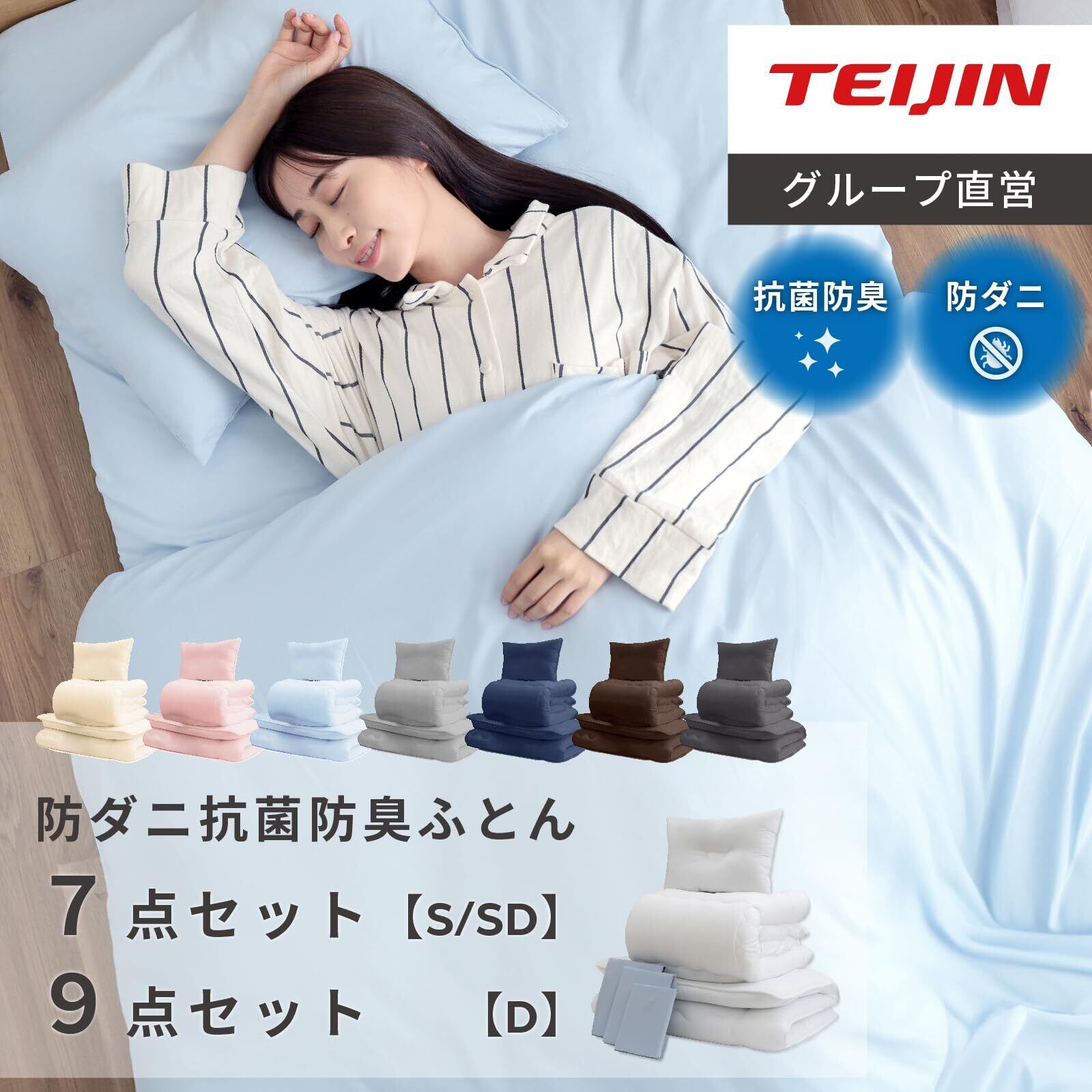 防ダニ・抗菌防臭性能をもつ自社素材を使用した、テイジングループ直営店が企画販売する布団セットです。