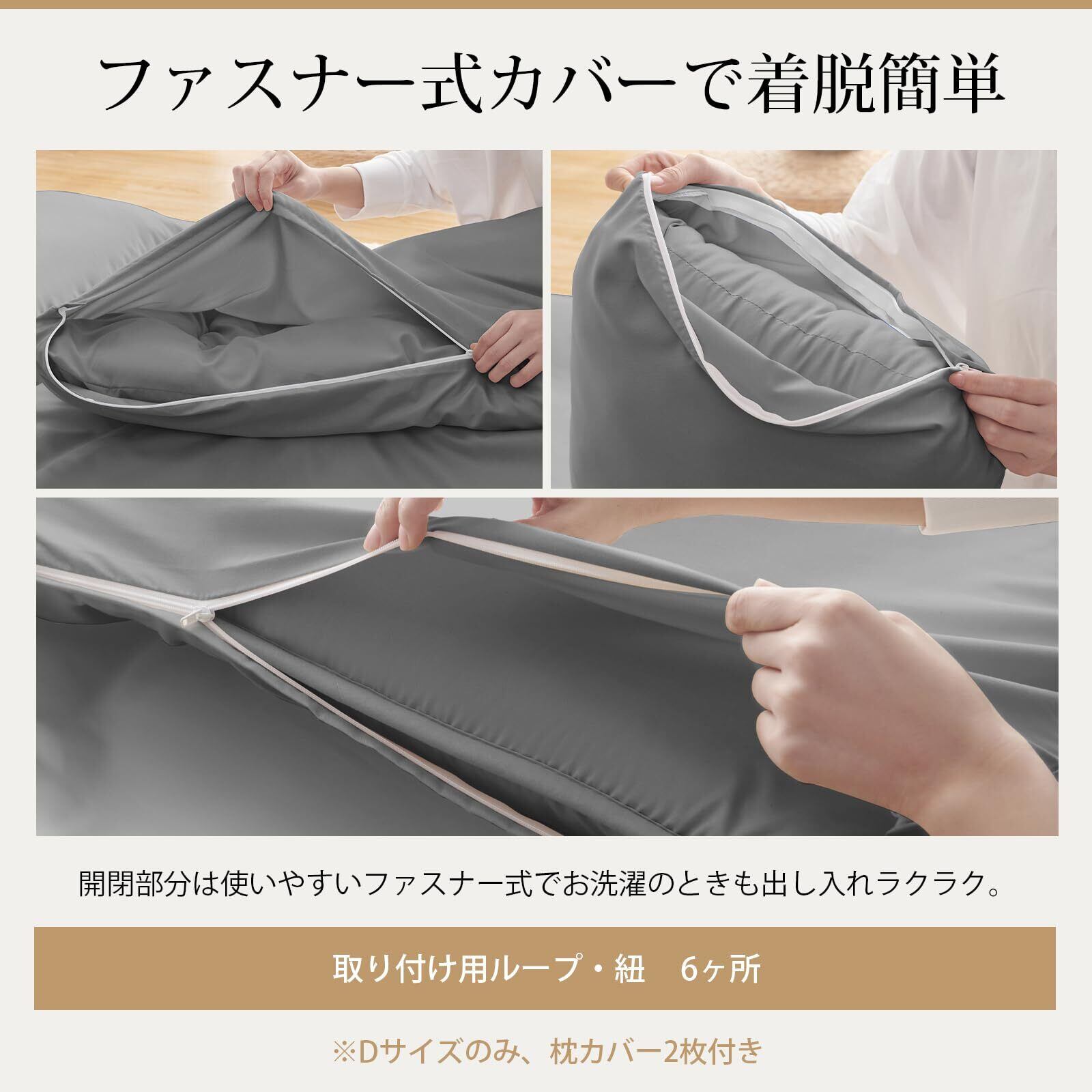 【防臭加工・丸洗いOK】防臭とは、主に動物や人間の皮脂や髪の毛に存在する「黄色ブドウ球菌」の繁殖を抑える効果のことです。SEK認証された優れた防臭加工を施すのでダニを寄せ付けにくく、細菌の増殖を抑制し防臭効果も発揮します。汚れても洗濯機で丸洗いでき、しっかりと縫製されたキルティング加工によって、洗濯するとき中綿の偏りを防いて、耐久性の高い素材を採用しているので、何度洗濯しても型崩れにくいです。※敷き布団は洗濯不可のでご注意ください。