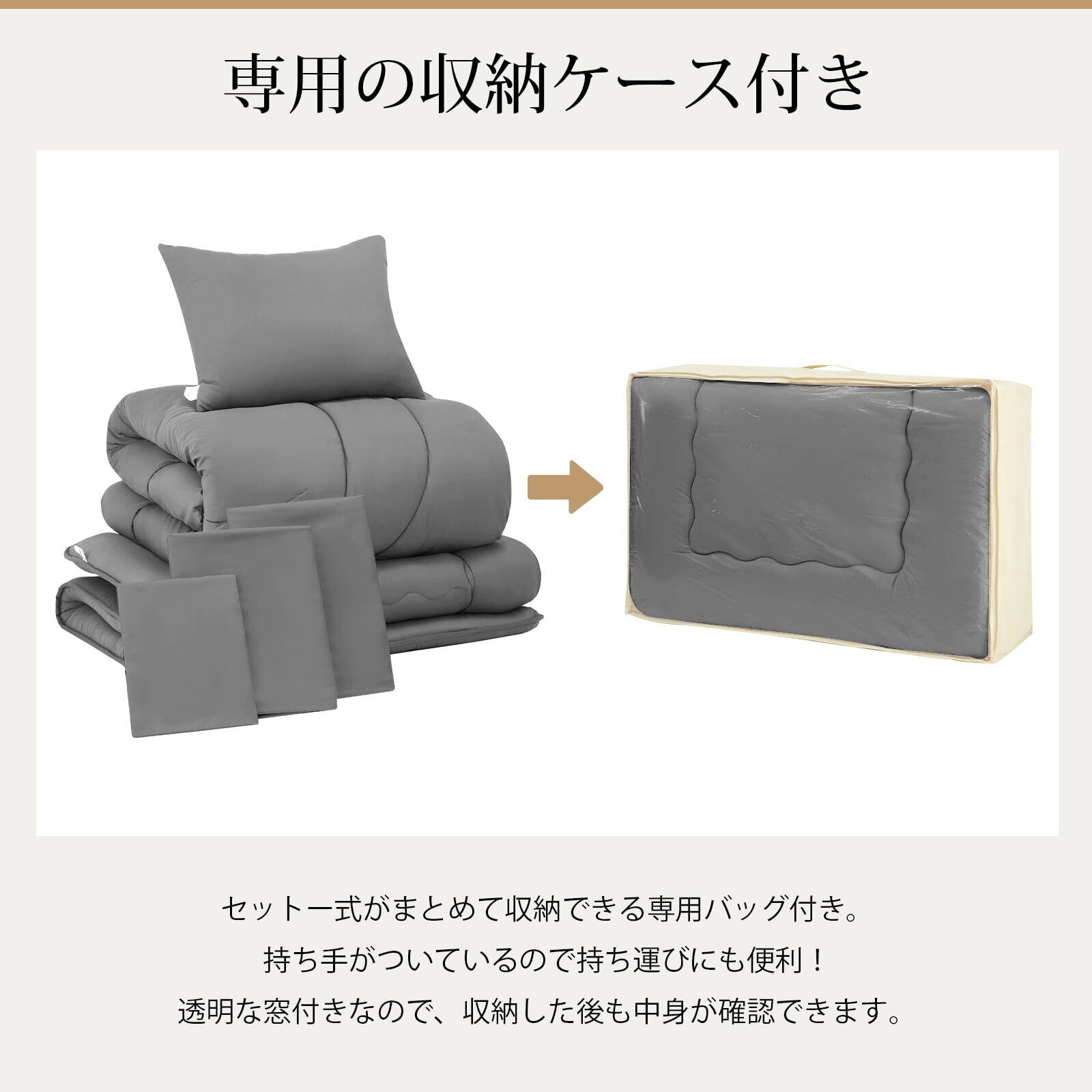 【数量限定】Keusnix 布団セット ダブル 布団9点セット 寝具セット SEK認証 防臭 オールシーズン ふとんセット 洗える 中綿2kg 掛け布団・【高密度固綿入り】五層敷布団・枕*2・布団カバー4点・収納ケース付き ホコリが出にくい ピーチスキン加工 なめらかな肌触り ダークグレー