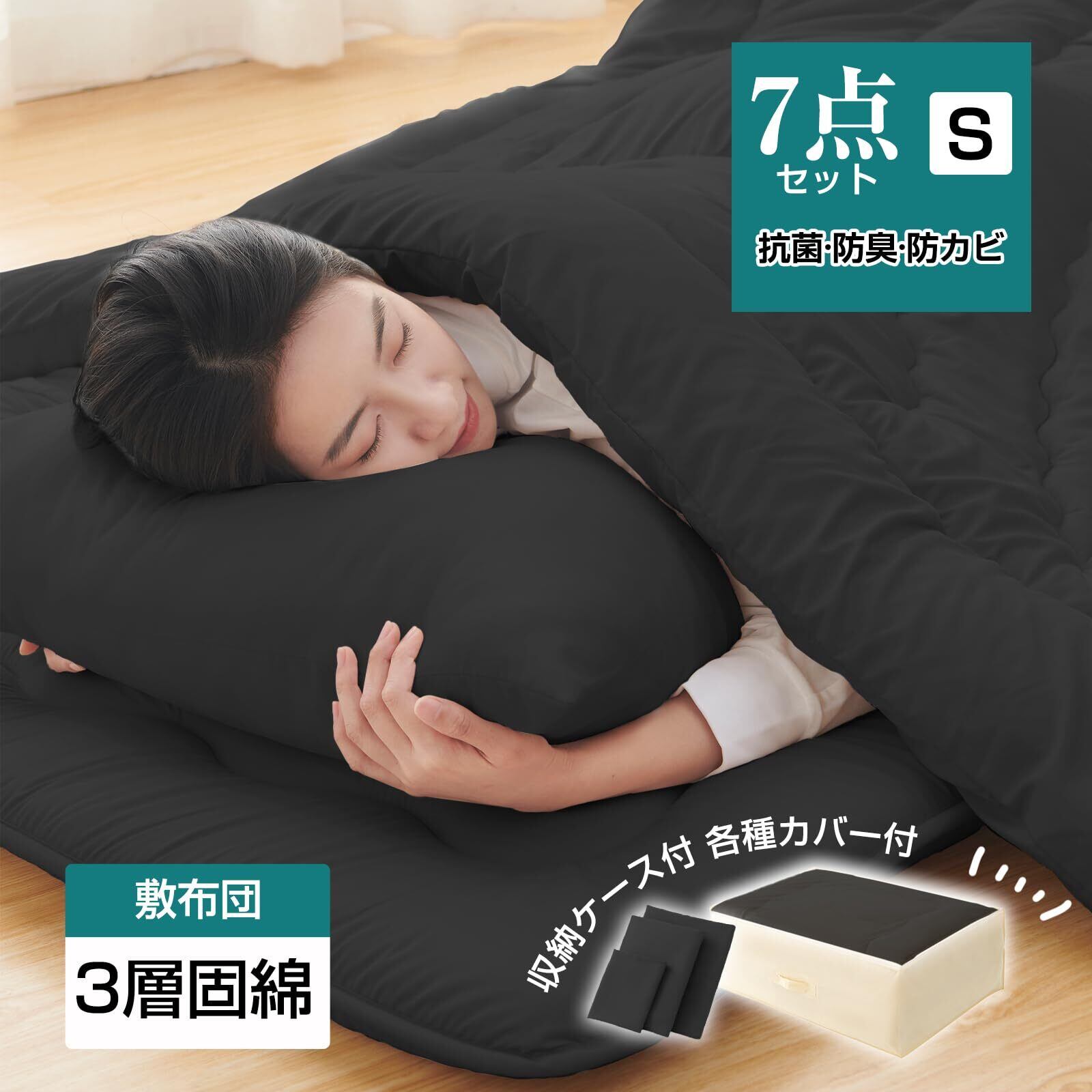 【高品質布団セット 7点】このセットには、敷布団、掛布団、枕、枕カバー、掛け布団カバー、敷き布団カバー、収納ケースの合計7点が含まれます。シングルサイズの寝具一式が揃うので、単身赴任や来客用に大変便利なコンパクトセットです。高密度の極細繊維を採用し、快適な睡眠環境を1年中提供できる品質を追求した布団セットです。