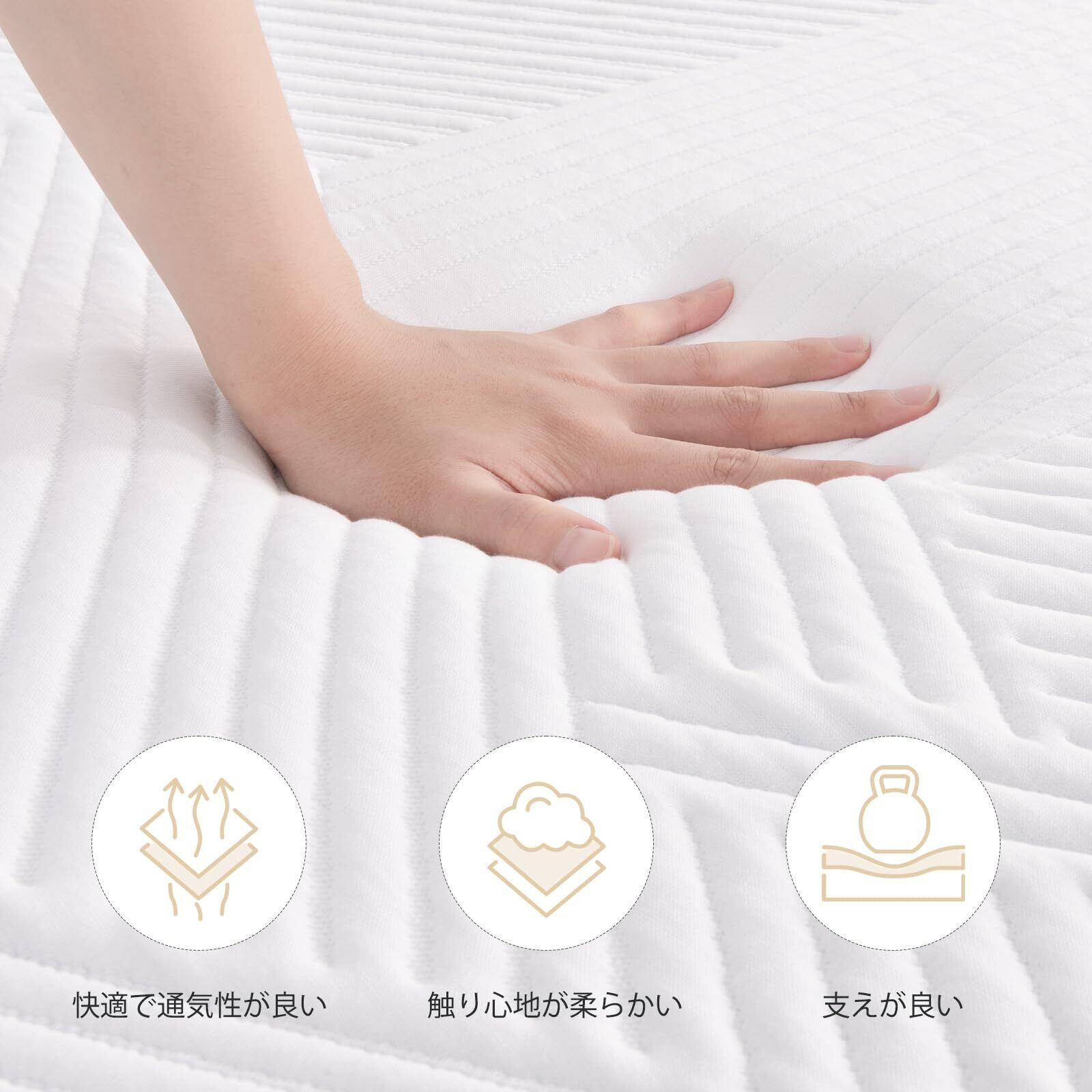 取り外し可能なマットレスカバー:柔らかく肌にやさしいニット生地を使用し、便利なジッパー設計で取り外しと取り付けが簡単です。60°Cで直接洗濯できるため、ほこりや細菌を効果的に除去し、マットレスを常に清潔に保ちます。毎晩の健康な睡眠を守ります。