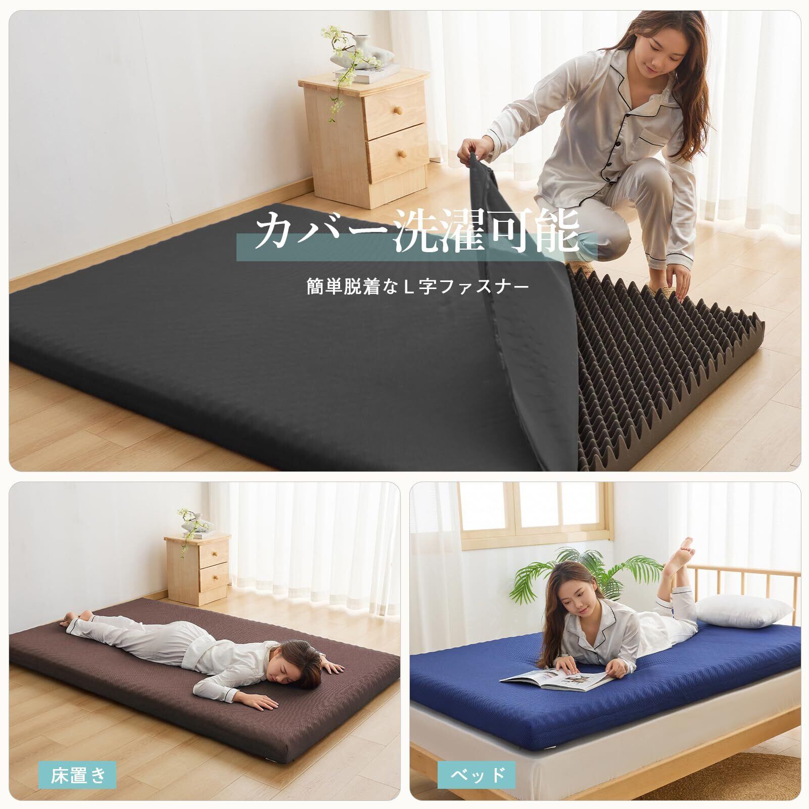 【カバー洗濯可能】高反発マットレスのカバーは簡単脱着できるL字ファスナー式デザインで、完全に取り外せるから、丸洗いできます。オリジナルカバーは優しい肌触りで、抗菌・防ダニ・防臭が対応しています。