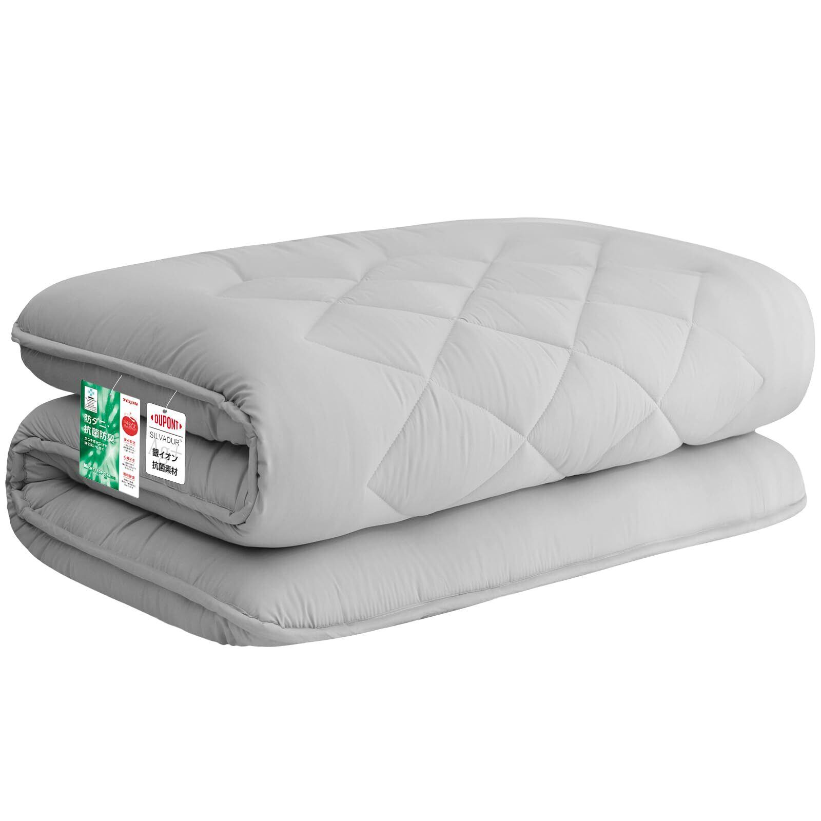 敷き布団 極厚10cm 五層構造 シングル 【TEIJIN マイティトップ中綿使用】抗菌・防臭・防カビ・防ダニ・吸汗・速乾 しきふとん ウレタン入り 高級 折り目なし 敷布団 しっかり支える 三つ折り 体圧分散 ホコリが出にくい ピーチスキン加工 やわらかな肌触り [圧縮なしタイプ 極厚] 100×210cm,グレー