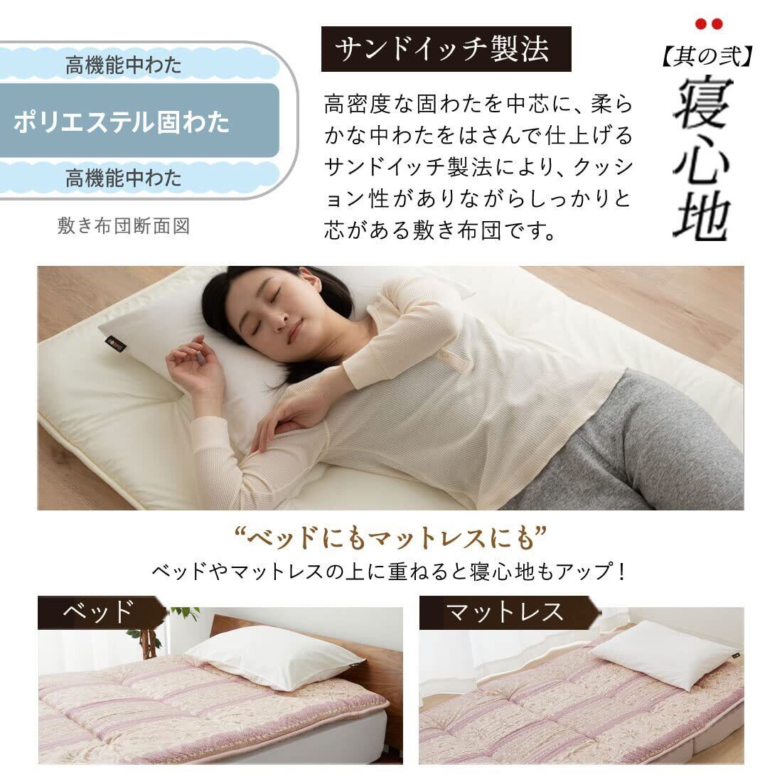 エムール 日本製 綿100% 軽量 6つ折り 敷き布団 シングル(約100×200cm) 防ダニ 抗菌 防臭 生成り