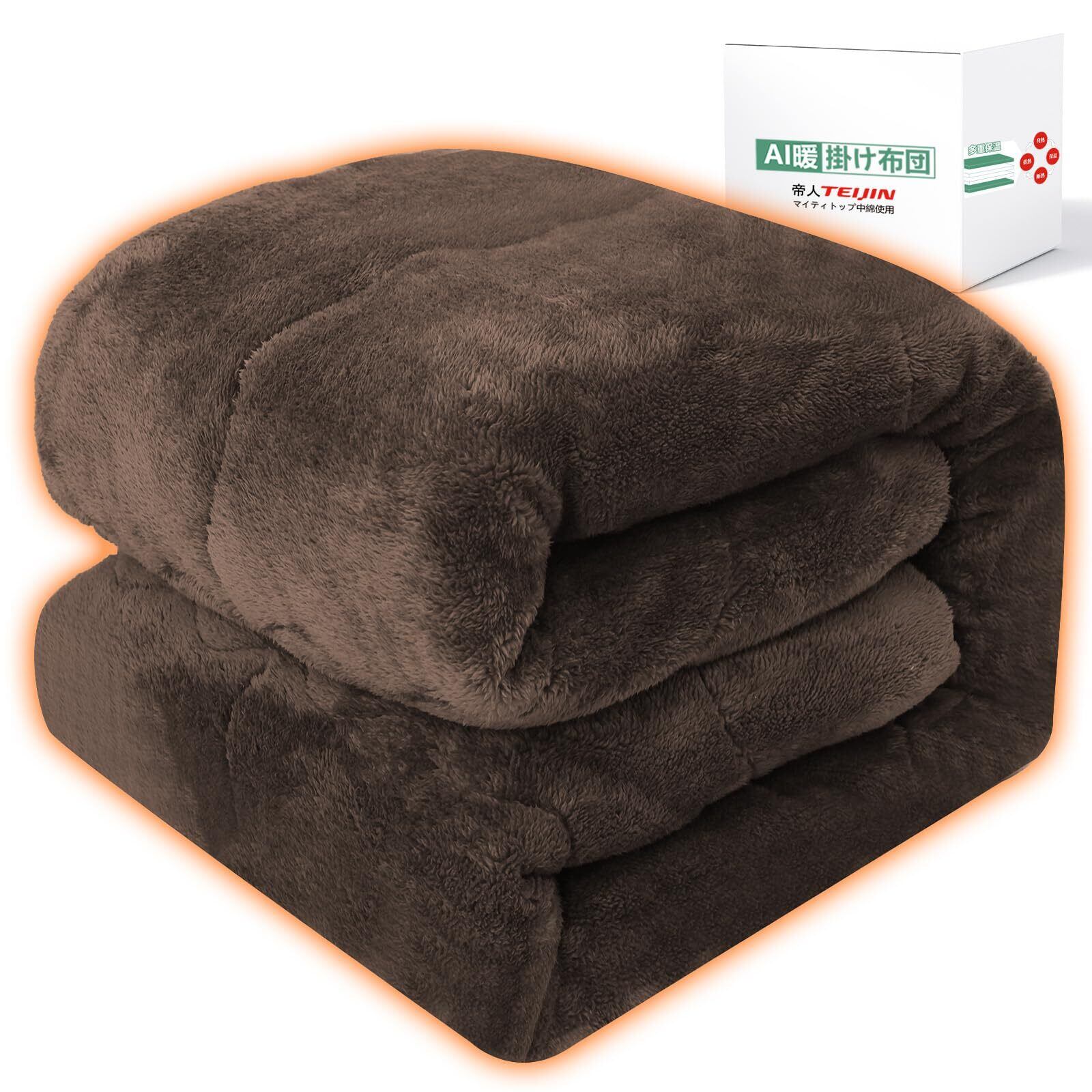 【帝人TEIJINマイティトップ中わた】掛け布団 シングル アルミシート入り 多重保温 吸湿発熱・蓄熱保温 掛け毛布 冬接触温感あったか かけ布団 二枚あわせ 厚手 キルトケット もうふ フランネル 静電気防止 抗菌防臭防ダニ加工 丸洗い 140x200cm ブラウン LIFERISE