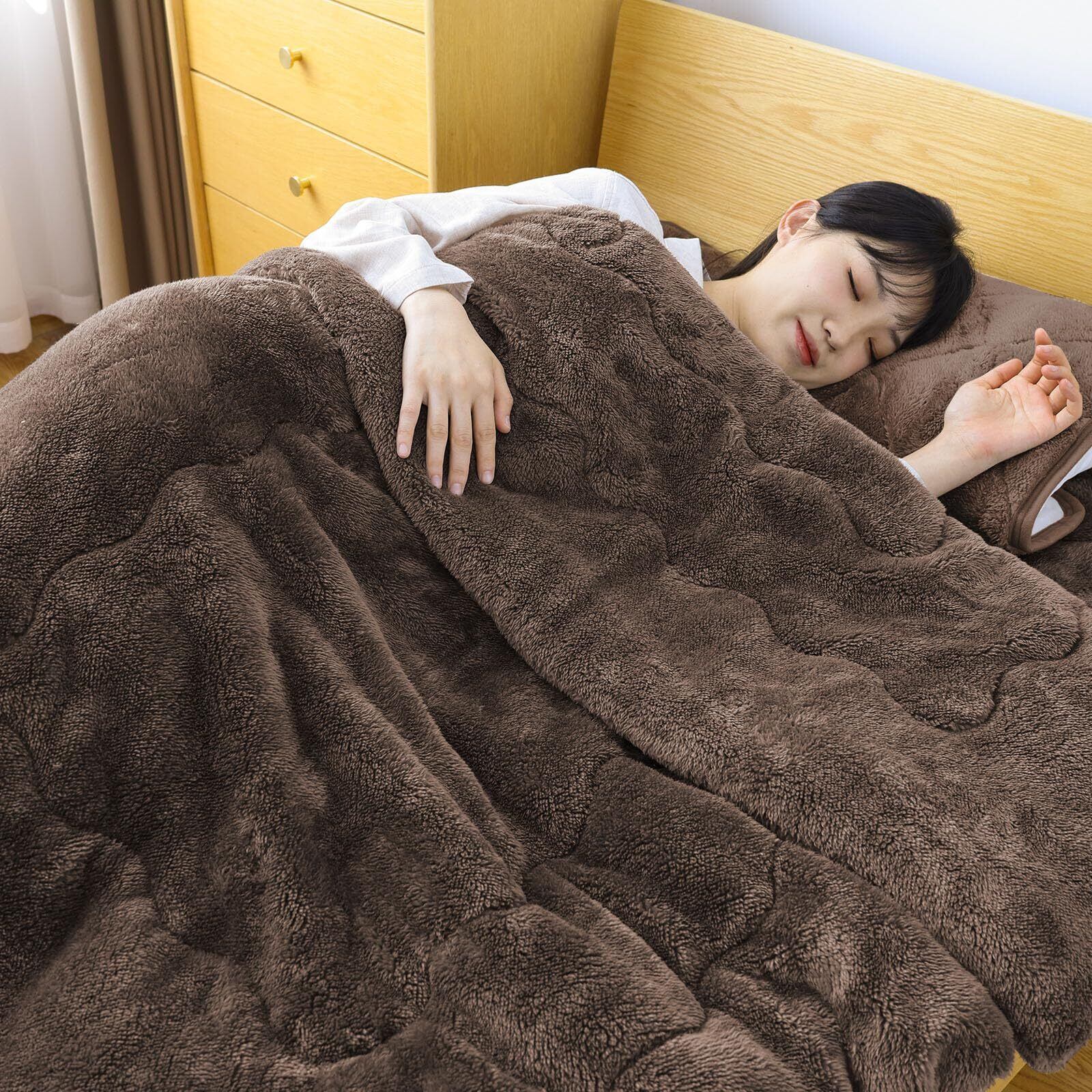 【数量限定】【帝人TEIJINマイティトップ中わた】掛け布団 シングル アルミシート入り 多重保温 吸湿発熱・蓄熱保温 掛け毛布 冬接触温感あったか かけ布団 二枚あわせ 厚手 キルトケット もうふ フランネル 静電気防止 抗菌防臭防ダニ加工 丸洗い 140x200cm ブラウン LIFERISE
