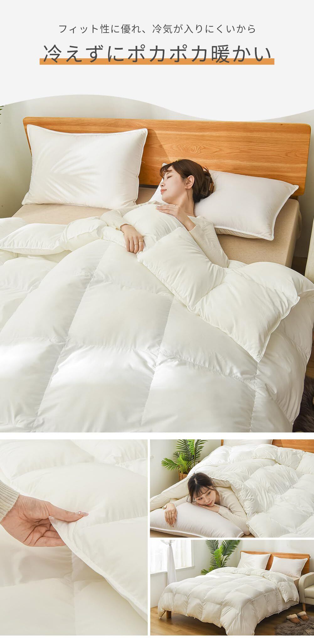 【未体験な軽さ・羽毛と同等の暖かさ】熟練の職人によって一つ一つ丁寧に縫製し、每日さ元最大20枚しか生産できないです。人工羽毛布団は軽く、薄く、なめらかな超軽量 高密度ダクロン中わたを厳選し、中わたのふんわり感を最大限に活かし、驚くような軽やかさを実現しました。の掛ふとんは42マスングル立体キルトで、軽くて約1.6kgで、ダウン率85%の羽毛布団を超える暖かさを達成します。また、しっかり体に吸着しフィットするため寒い冬でもあたたかくお休みいただけます。まるで一流のホテルのような、上質な眠りを叶える掛け布団です。