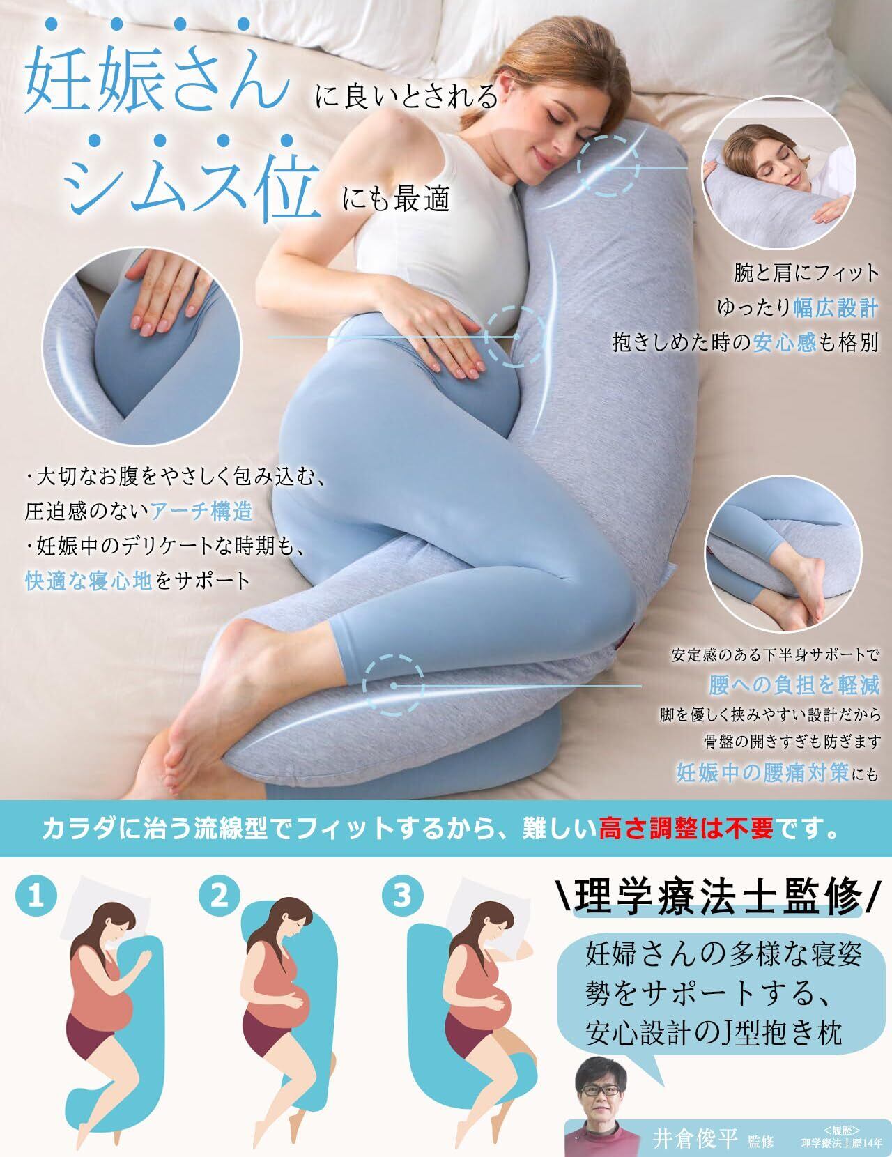 【妊婦さんにおすすめ】腹部を圧迫しないアーチ構造で、横向き寝時に抱くと自然と身体にフィット。妊娠中のプレママさんが寝転がるときに楽な姿勢であると言われているシムス体位も取りやすい構造です。横になって足を抱き枕にのせることで、まくらが体圧を分散し、お腹の重さを感じにくく、足もリラックスできるます。