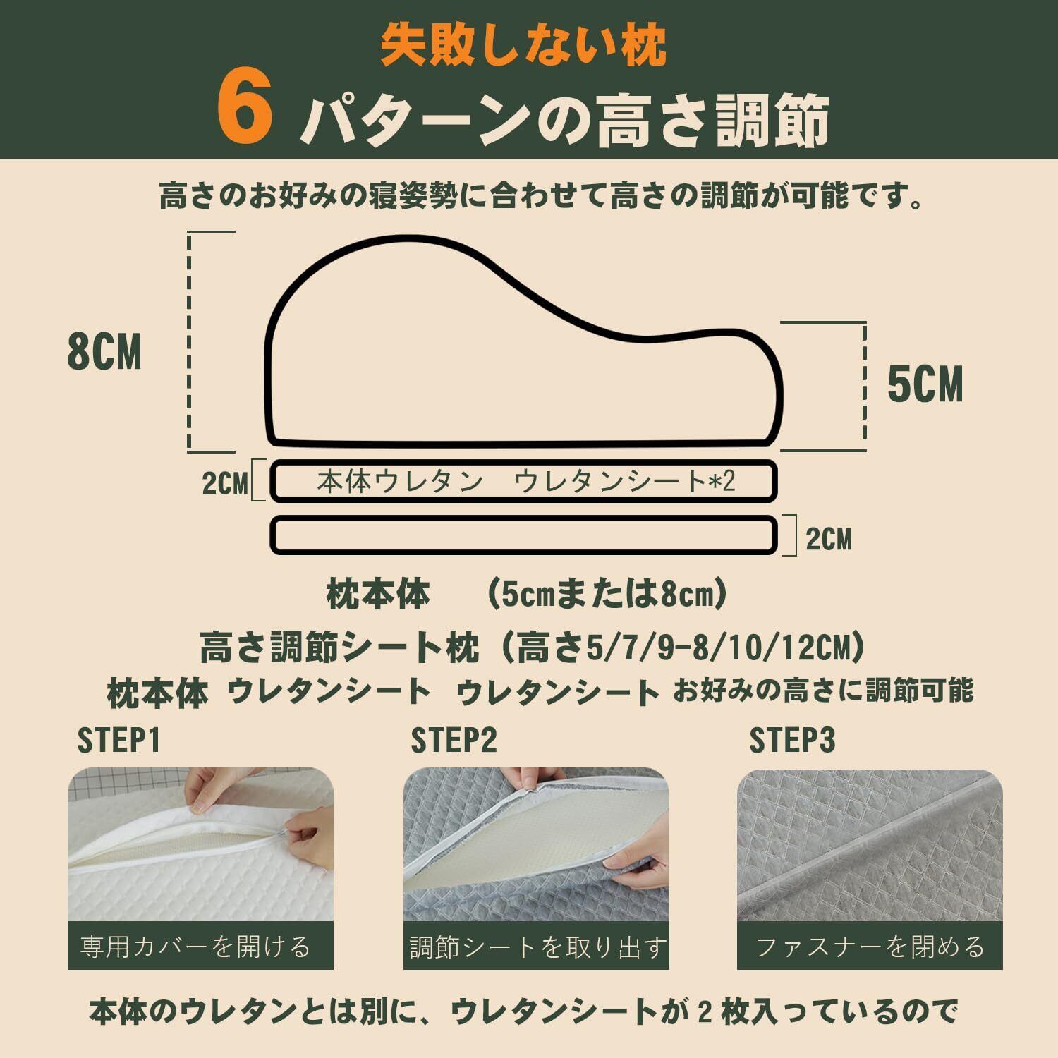 Sleepeach 枕 まくら 低反発 低反発枕 【6段階高さ調整機能で「失敗しない」高さ調整可 pillow ジャストフィット カバー洗濯可(グレー)