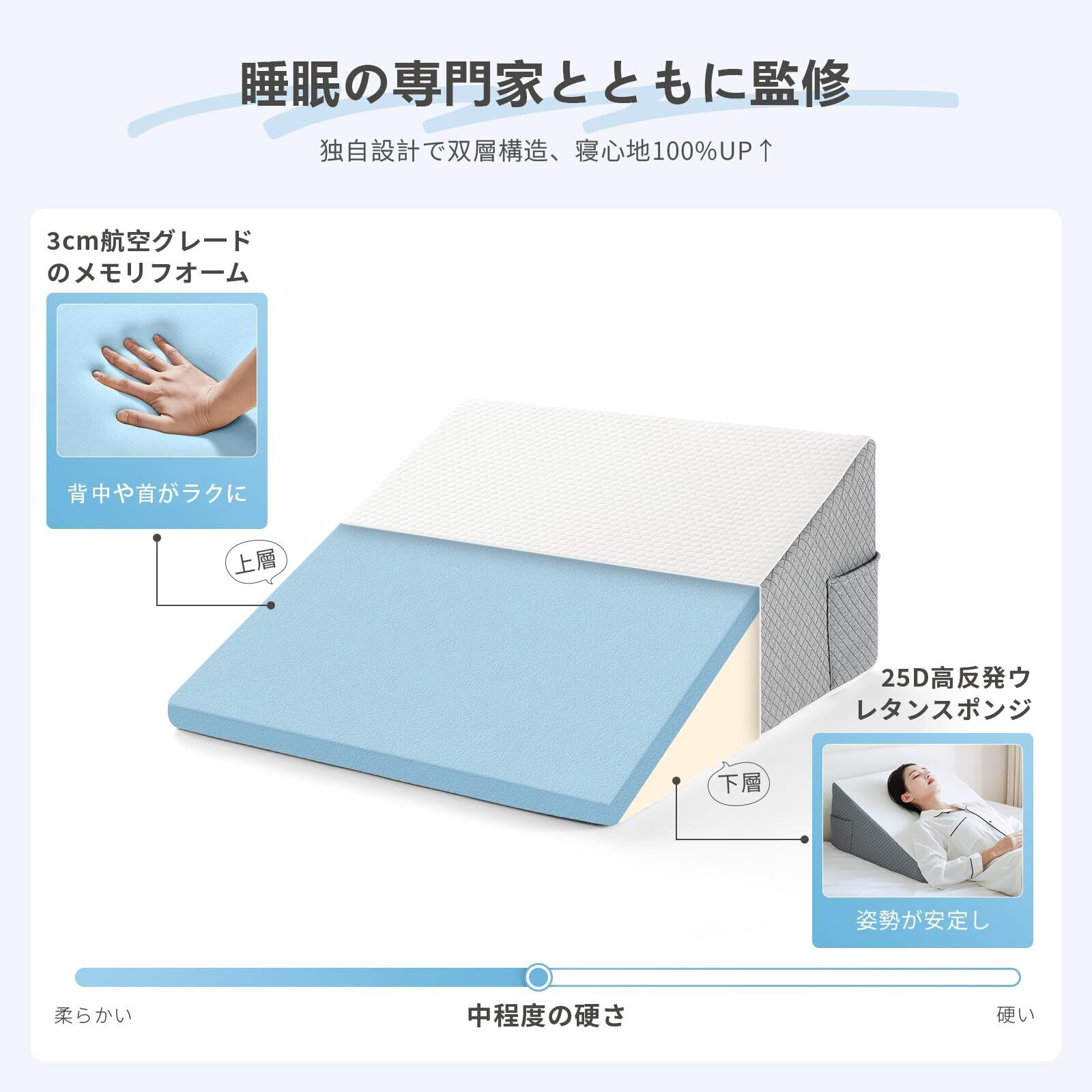 【2大アップグレード:①快適性向上 ②幅を+10cm拡大】 三角クッションが硬すぎたり、幅が狭くて困っていませんか?Tillmulya三角クッションがついにアップグレードしました! ① 内芯を改良:3cmの航空級メモリーフォームと16cmの高反発メモリーフォームを組み合わせた独自の二層構造。硬すぎず柔らかすぎず、やさしい感触を実現。一度使えば手放せません!長時間同じ姿勢でもヘタリにくい設計です。 ② 幅を62cmに拡大:男女問わずゆったり使える大幅サイズ。寝返りも思いのまま、広々快適にリラックスできます。