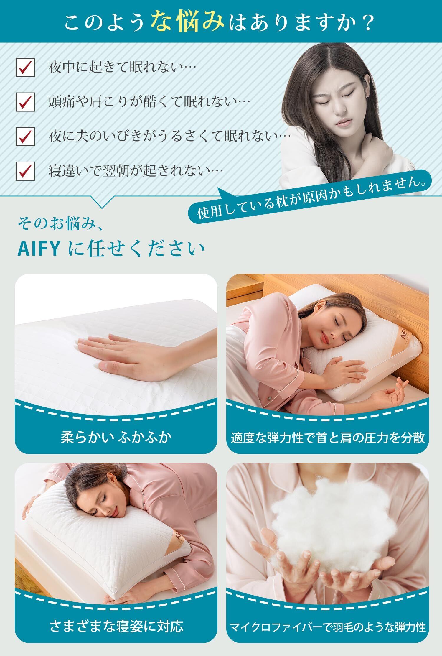 【新春セール】AIFY枕 まくら 首が痛くならない 快眠 高級ホテル枕 高さ調整 低め 高め pillowホテル仕様 横向き寝 仰向け寝 洗える枕 ふんわり マクラ 安眠枕 通気性 抗菌 快眠枕プレゼント63x43x16cm (ホワイト)